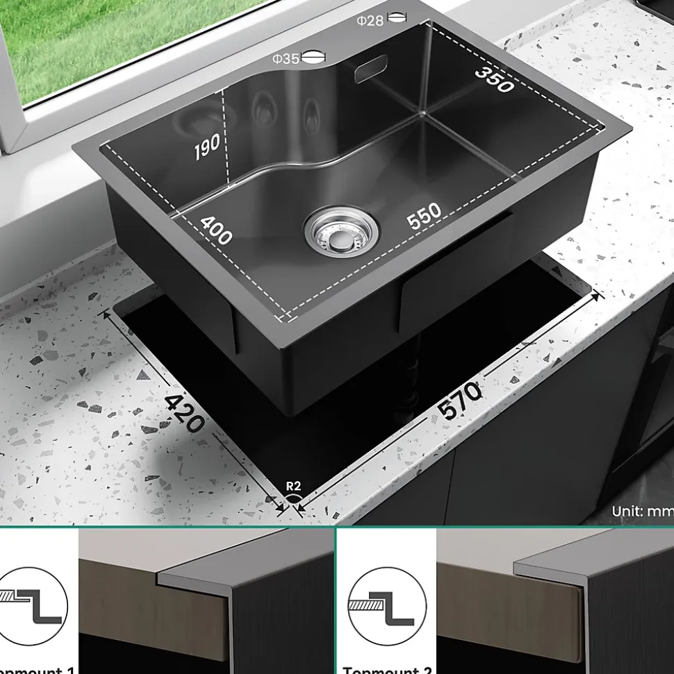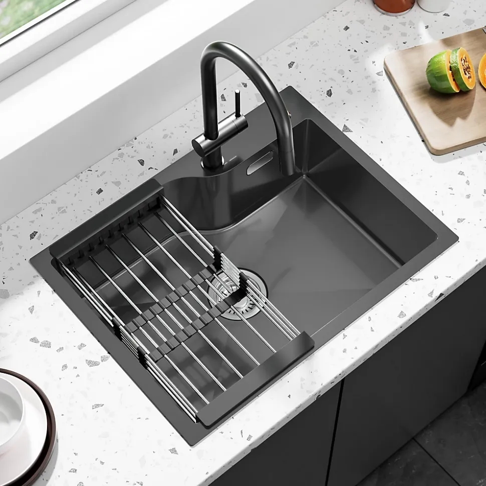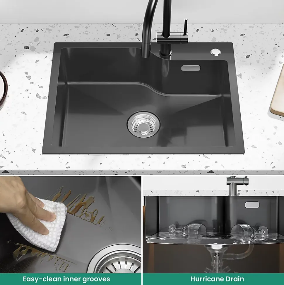 - ✔ Installation flexible et accessoires inclus : Compatible avec pose en applique ou encastrable, livré avec panier égouttoir et filtre de vidange en acier inox 304.