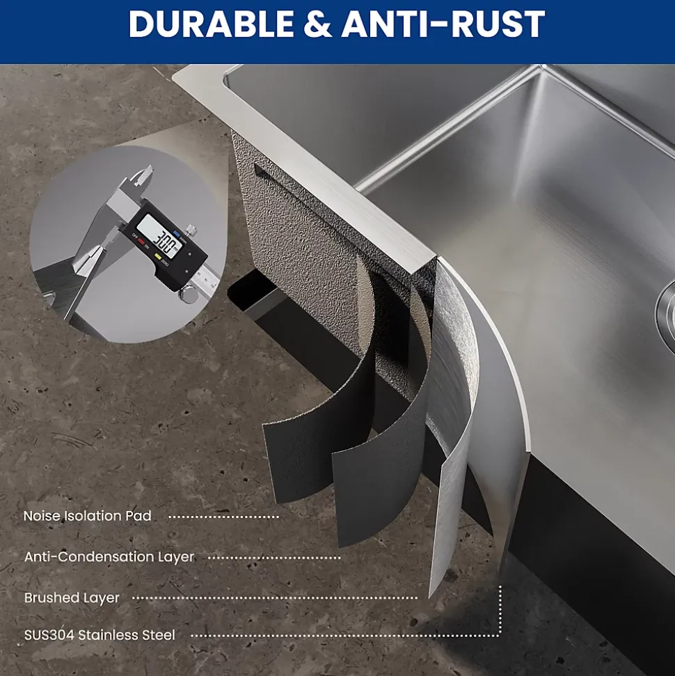 - ✔ Durabilité premium – Acier inox 304 épais (3 mm) + finition brossée anti-rayures et anti-taches.