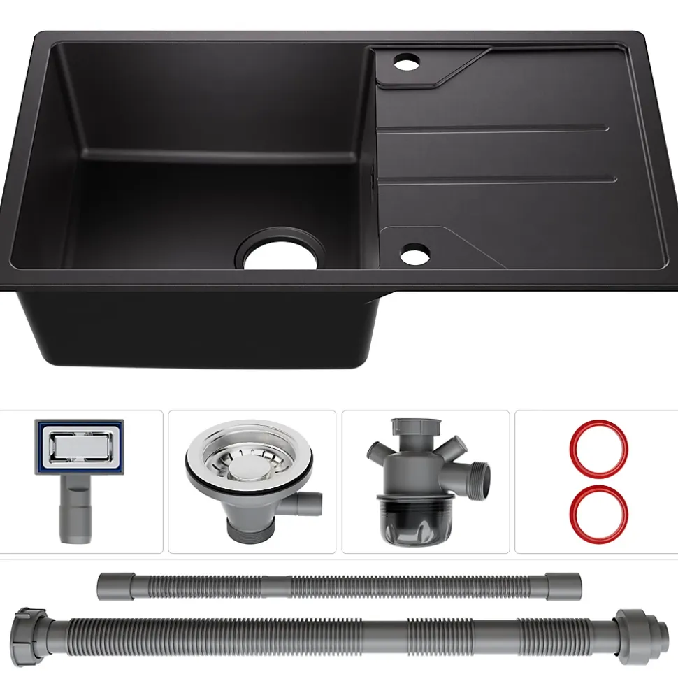 - ✔ Fonctionnalités pratiques : Bonde anti-odeurs avec 2 raccords pour lave-vaisselle et trop-plein intégré.