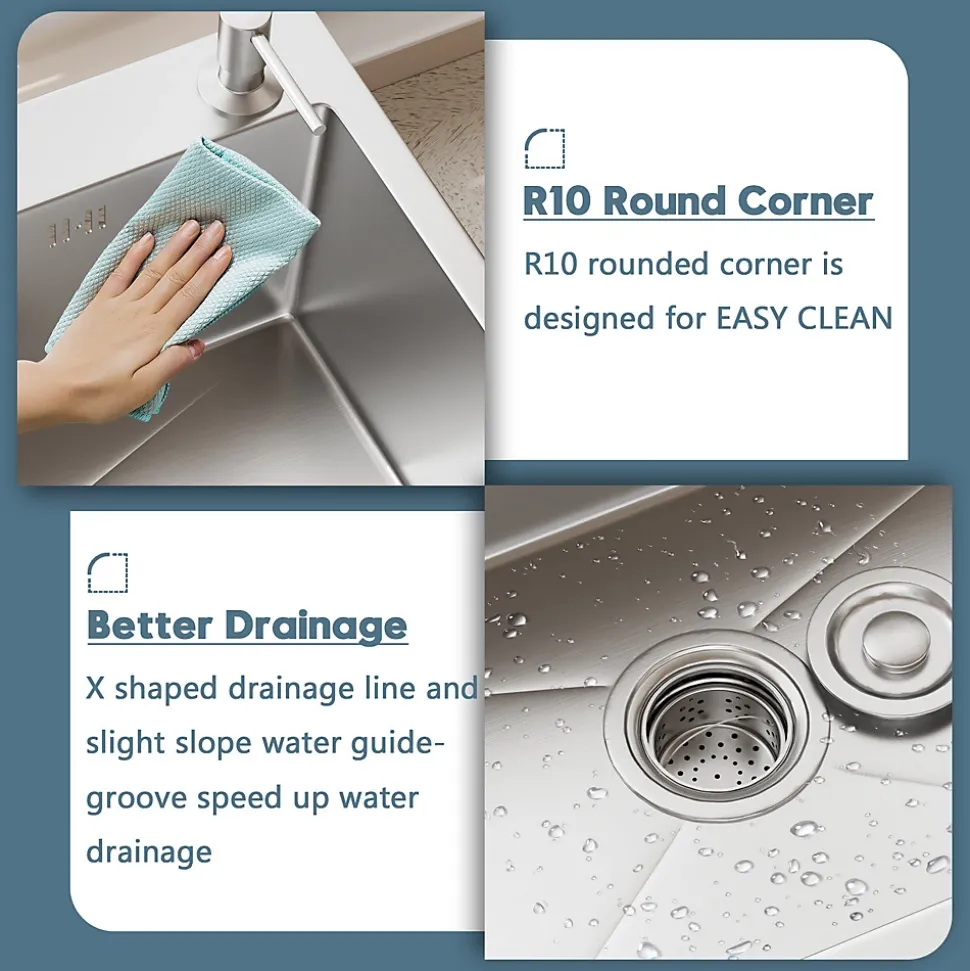 Description du produit:Spécifications du produit :Couleur : ArgentéDimensions du produit : 68 × 45 × 22 cmEmballage extérieur : 73 × 50,5 × 26 cmPoids brut : 8 kgPoids net : 7,5 kgConstruction en acier inoxydableComprend : Évier, évier intérieur, planche à découper, lave-tasses, distributeur de savon, système d’évacuation