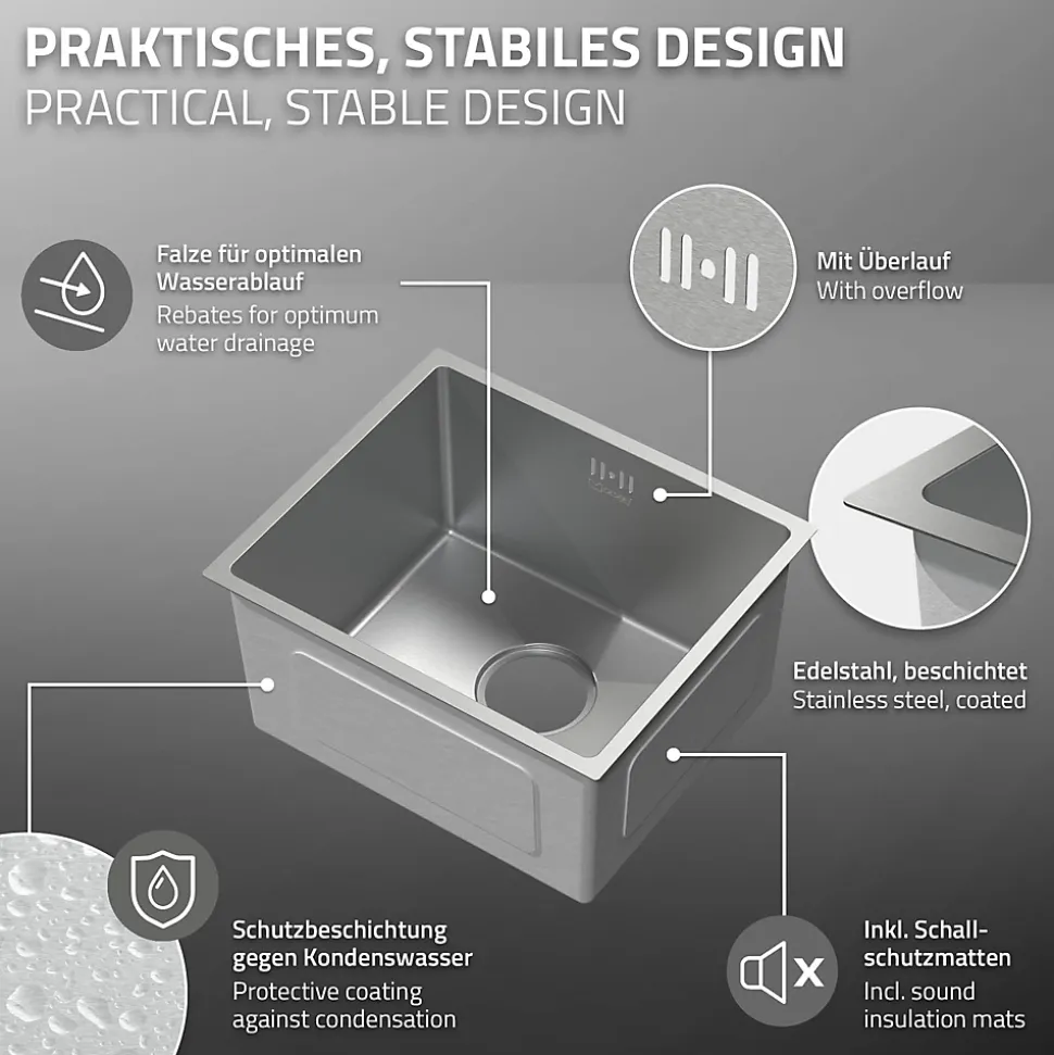 Description du produit :Ton nouvel atout pour la cuisine : évier encastré en acier inoxydable (40 x 34 cm) avec insonorisation et protection contre la condensation.Donne à ta cuisine une mise à jour moderne avec cet évier encastré en acier inoxydable de haute qualité (40 x 34 cm) et profite du confort de solutions de cuisine fonctionnelles ! Cet évier convainc par son design intemporel, ses Livraison, de sorte que tu peux utiliser ton évier immédiatement après le montage.Contenu de la livraison :1 x évier1 x garniture d’écoulement et de trop-pleinAttention : un robinet n’est pas inclus dans la livraison !