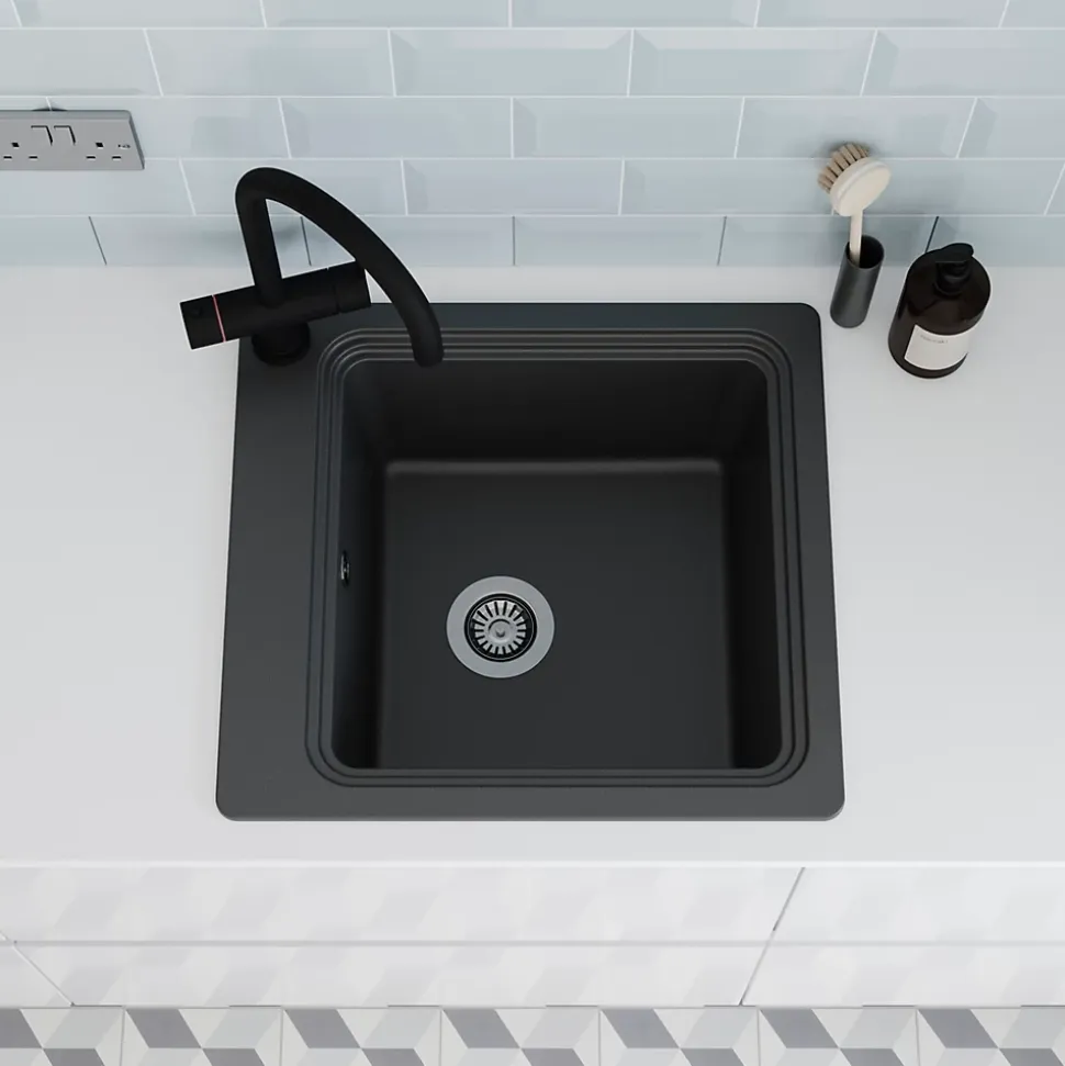 Évier de cuisine en composite de quartz noir 1 bac à encastrer GoodHome Romesco