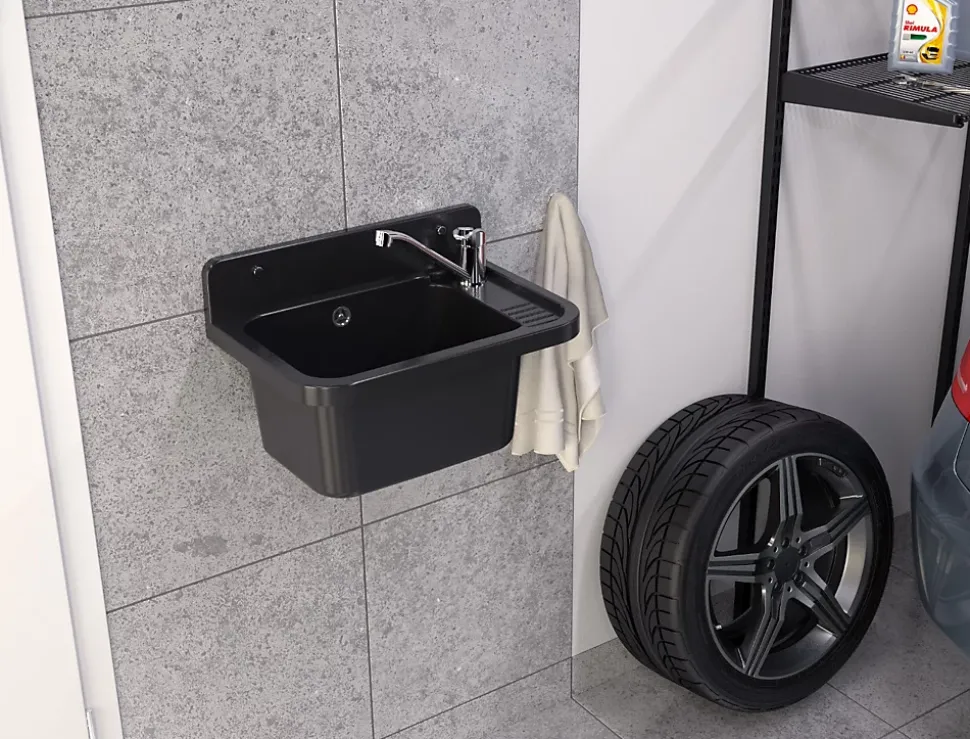 Présentation du produitOffrez à votre garage, buanderie, atelier ou espace de lavage une solution pratique et élégante avec l’évier en granit gris Paron Granitan doté de son robinet extractible noir. Fabriqué en polypropylène durable, cet évier est résistant aux produits chimiques et aux températures élevées. Ce matériau non absorbant garantit une utilisation idéale à la fois en intérieur et en extérieur. Sa finition noire classique à l’aspect marbré apporte une touche d’élégance tout en assurant une excellente fonctionnalité.Caractéristiques principalesRobinet inclus avec bec extractible et finition chromée résistante aux hautes températures et à la décolorationÉvier résistant en polypropylène, adapté aux usages intensifsUtilisation pratique pour divers espaces : maison, atelier ou espaces publicsInstallation simple avec kit complet fourni, y compris siphon et options de raccordement pour lave-linge ou lave-vaisselleConception légère pour une installation rapidePourquoi choisir ce produit ?La combinaison de durabilité, de praticité et de design élégant rend cet évier parfait pour divers besoins. De plus, avec tous les accessoires inclus, vous aurez tout ce dont vous avez besoin pour une installation facile et personnalisée. Le robinet extractible et pivotant permet une utilisation flexible, facilitant le nettoyage des grands objets. Adapté aussi bien à un usage domestique qu’à des espaces professionnels, cet évier garantit une performance à long terme grâce à des matériaux solides et un design étudié.Spécifications techniquesDimensions de l’évier : 50 cm x 34 cm x 31 cmMatériau : PolypropylèneCouleur : NoirPoids : 4 kg (emballage inclus)Contenu du kit : Évier et robinetType d’installation : EncastréForme : Rectangulaire