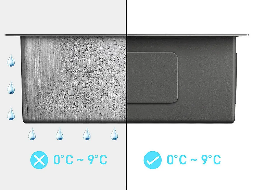 - Robustesse et immuabilité de l’acier inoxydable, Fond en pente diamant pour une évacuation optimale, Couche anti-condensation avec isolation phonique, 3 installations possibles : sur plan », » sous plan ou à fleur de plan, Finition satinée qui masque les traces