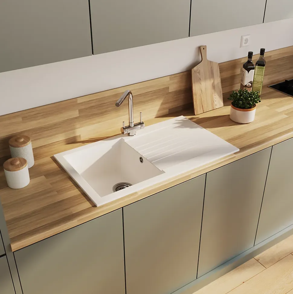 Évier en composite blanc 1 bac à encastrer Karta