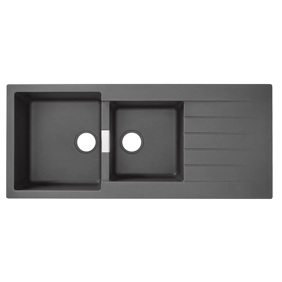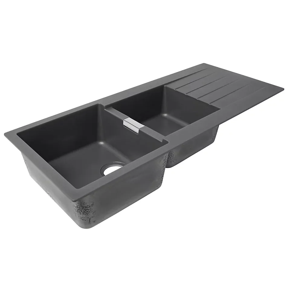 Évier en composite de quartz gris 2 bacs à encastrer Galvani