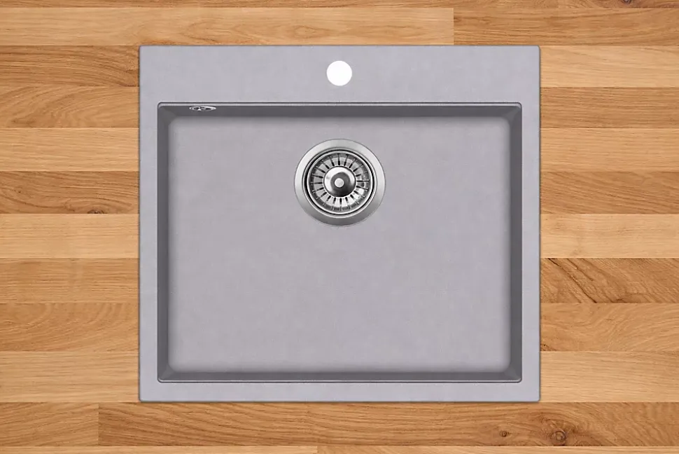 Evier au style moderne, épuré et chaleureux.Type d’évier : évier à encastrer, à cuve unique, de forme rectangulaire aux angles légèrement arrondis.Matériau et couleur : Granit de synthèse, de couleur NOIR, ce qui lui donne un aspect très contemporain.Cet évier s’intègre harmonieusement dans une cuisine aux façades en bois et aux lignes minimalistes, renforçant une ambiance naturelle et haut de gamme.Evier à la fois fonctionnel, élégant et parfaitement adapté à une cuisine contemporaine.Evier 1 bac carré sans égouttoir. En granit GRIS. Dimension totale:565X510mm (bac:495x357x200). Fourni sans mitigeur avec vidage manuel. Granit: 80% quartz naturel, 20% résine). Pour un meuble sous évier de 60cm minimum. Garantie 15ans.