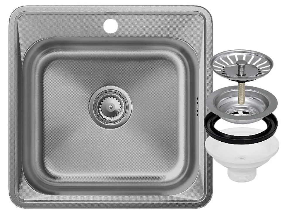 Évier en acier TURI48 avec un bac et siphon – La perfection pour votre cuisine Découvrez une solution moderne et fonctionnelle pour votre cuisine avec l’évier en acier TURI48 de Granitan. Cet élégant évier en acier inoxydable de haute qualité allie style et durabilité. Sa surface est dotée d’une structure micro décor unique qui, en plus d’être esthétiquement agréable, résiste aux rayures et aux dommages. Grâce à son design intemporel et polyvalent, cet évier s’intègre parfaitement aussi bien dans une cuisine traditionnelle que moderne. Avec des dimensions compactes de 480 x 480 mm, il est idéal pour les meubles de cuisine à partir de 50 cm de largeur.Une conception de haute qualité et pratique L’évier TURI48 est équipé d’un trou pré-percé pour un robinet de cuisine et est livré avec un siphon manuel en chrome, qui renforce l’aspect moderne du produit. Cet évier résiste à des températures élevées et aux chocs thermiques. Il est également doté d’un tapis d’isolation acoustique, rendant son utilisation plus silencieuse et confortable. Sa construction robuste lui permet de résister aux impacts, aux rayures et aux décolorations, garantissant une utilisation durable.Caractéristiques techniques – Série : TURI – Type : Encastrable – Nombre de bacs : 1 – Matériau : Acier inoxydable – Couleur : Chrome (micro décor) – Marque : Granitan – Forme : Carrée – Dimensions : 480 x 480 mm – Dimensions du bac : 415 mm x 370 mm – Profondeur du bac : 160 mm – Diamètre de l’orifice de vidange : 92 mm – Convient pour meubles de cuisine d’une largeur minimale de : 50 cm – Poids avec emballage : 2 kg – Contenu de l’ensemble : Évier avec siphon chromé