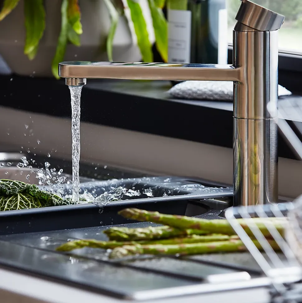 - Format compact : s’adapte aux meubles bas plus petits (60cm), idéal pour les petites cuisines