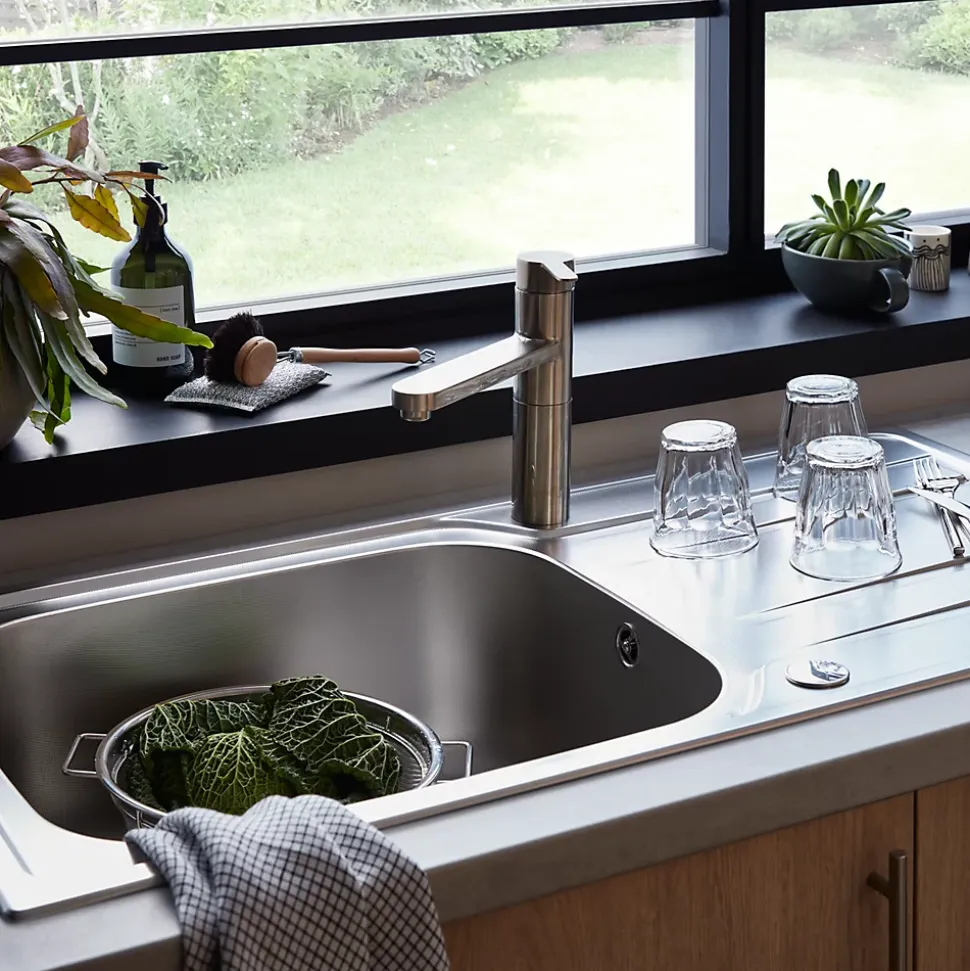 Les éviers Lyell disposent d’un égouttoir minimaliste et d’une grande cuve soudée, offrant ainsi un design plus contemporain et davantage d’espace de travail utilisable. Ils sont conçus en acier inoxydable 18/10 de qualité supérieure avec une finition brossée, pour une résistance accrue aux rayures. Fournis avec un joint monté en usine qui réduit considérablement le temps de montage, tout en assurant un ajustement étanche à l’eau.