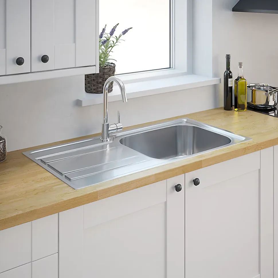 - Evier à encastrer en Acier inoxydable avec couvercle pour le trou de robinetterie, joint monté en usine et clips de fixation