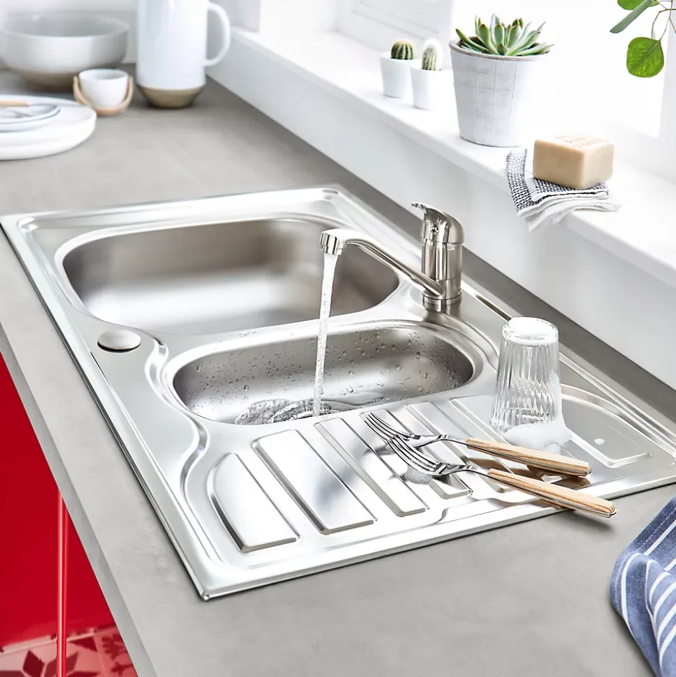 Facile à entretenir grâce à sa finition satiné, cet évier à encastrer » trouvera sa place dans votre cuisine. Idéal pour les petits espace, vous bénéficierez d’un égouttoir et d’une demi cuve pour travailler sereinement.