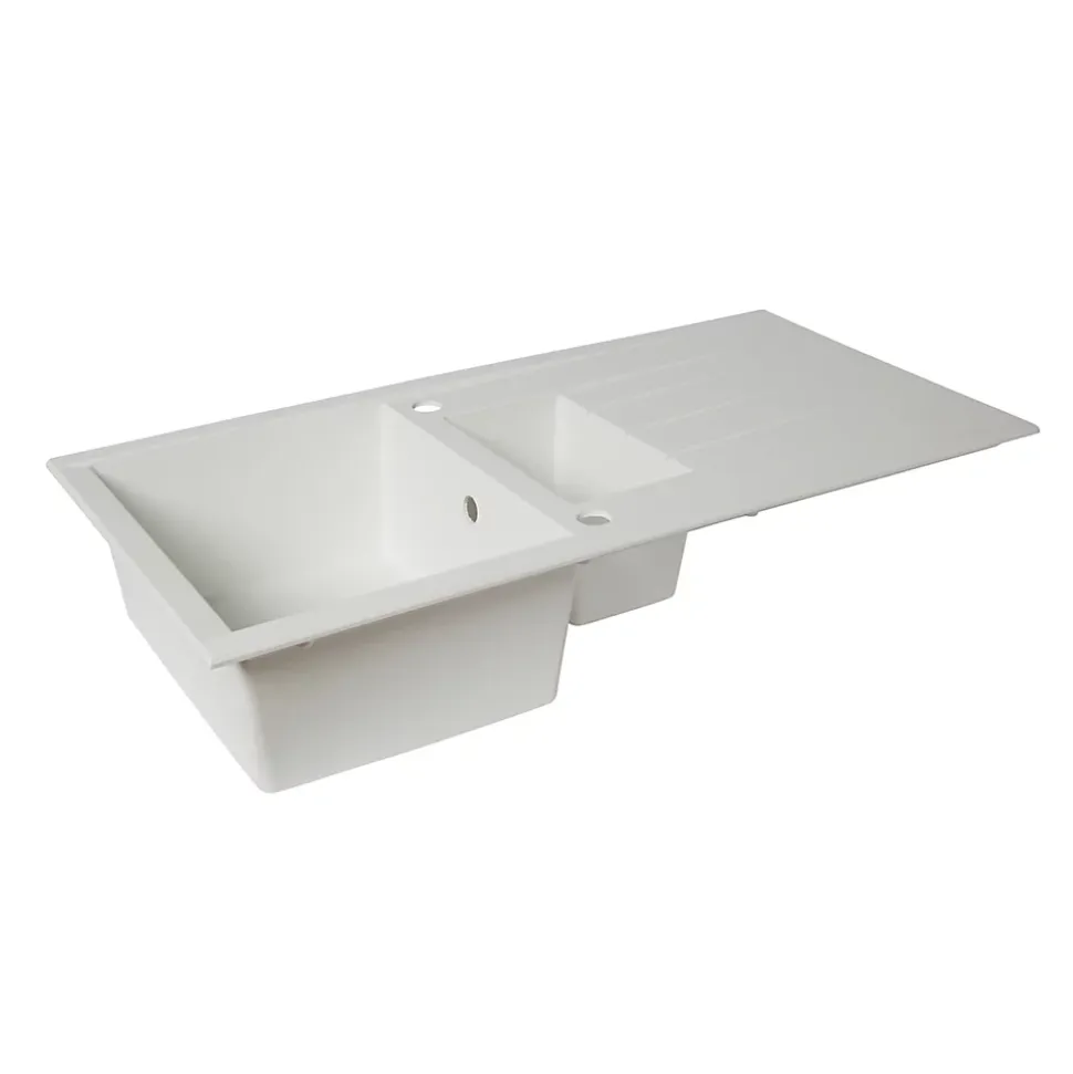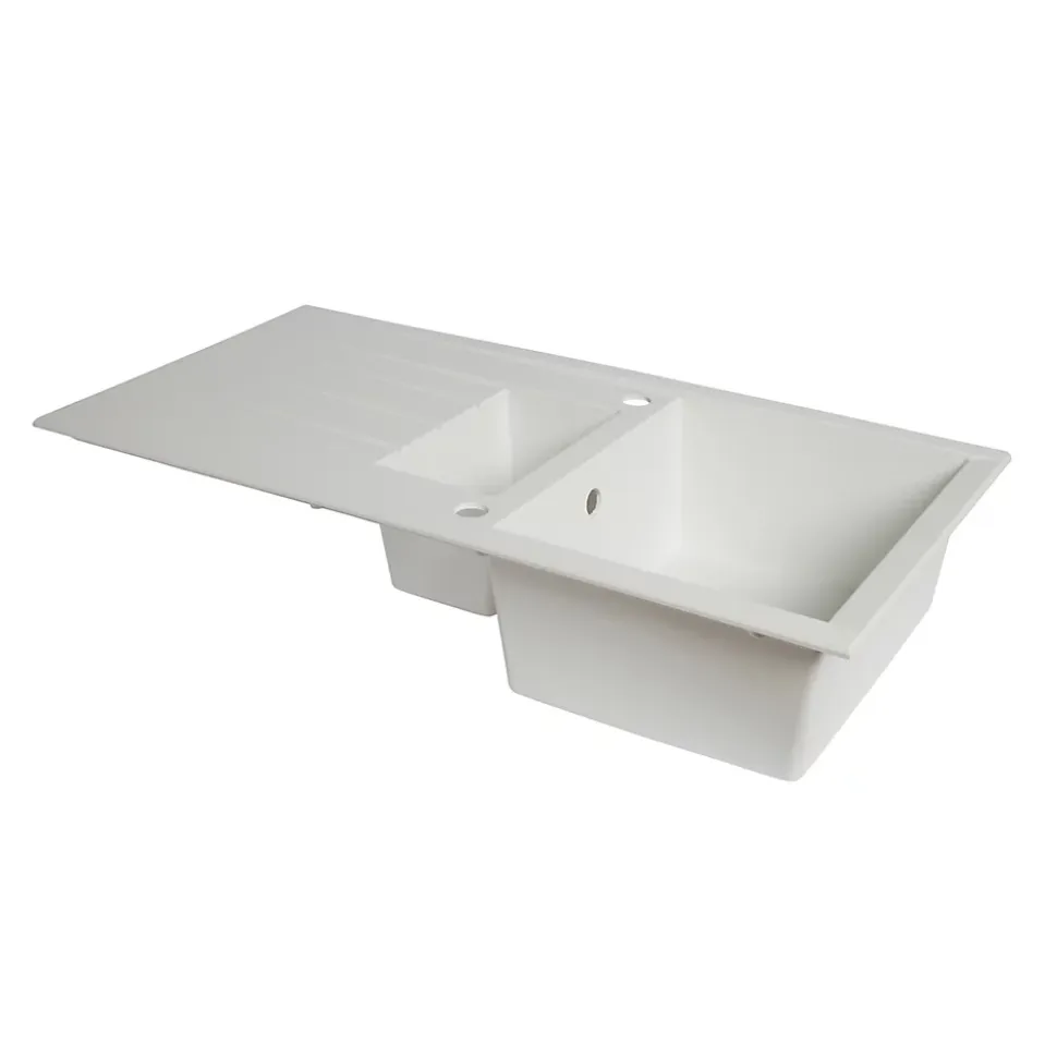 Évier en résine blanche mate 1,5 bacs à encastrer Ising