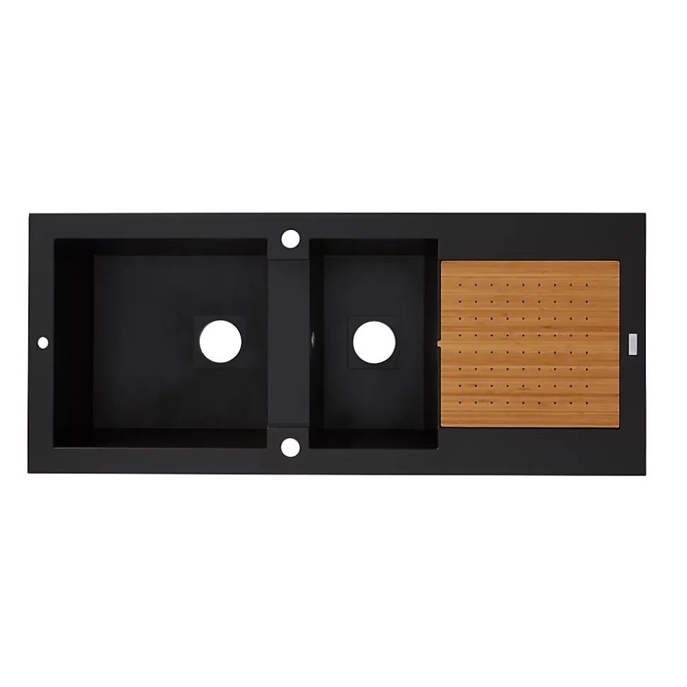 - Planche/égouttoir réversible : 1 côté égouttoir, 1 côte planche à découper