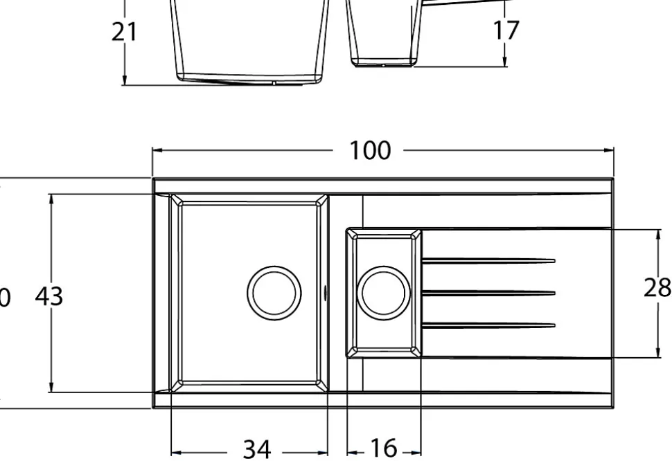 - Evier à encastrer en Résine avec Couvercle pour le trou de robinetterie et clips de fixation