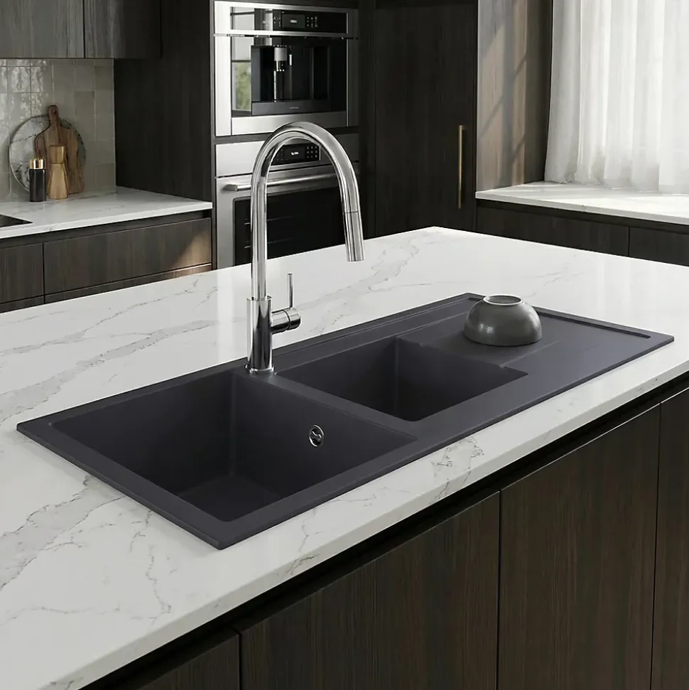 Évier en résine noire mate 2 bacs à encastrer Ising.