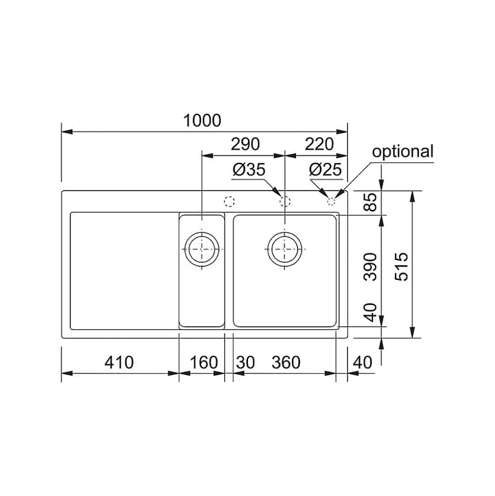 Caractéristiques de la gamme- Evier pré-percé à 35 mm pour robinetterie et commande de vidage- Bonde automatique dans la grande cuve, bouton push inox inclus- Vidage gain de place comprenant bonde 90 mm et siphon- Garantie 10 ans sur Fragranit+- Traitement anti-bactérien pour une hygiène parfaite- Rayons de 25 mm dans les angles de la cuve Caractéristiques du MTG651-100Sous meuble 600 mmDécoupe 980 x 495 mmBassin 360 x 390 x 205 mm / 160 x 390 x 145 m