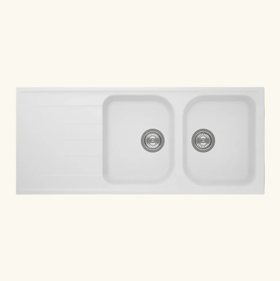 POINTS FORTS : • Évier encastrable 116×50 cm • • Evier vidage manuel • • Meuble sous évier 80 cm minimum • • Évier réversible fabriqué en Allemagne CARACTÉRISTIQUES : • Équipements inclus : bonde(s), siphon, trop plein, tuyaux d’évacuation • Marque : Schock • Matériau : Granit • Type de pose : à encastrer • Positionnement égouttoir : réversible • Coloris : Blanc • Emplacement robinetterie : pré-marqué • Nombre de bacs : 2 bacs • Poids net (Kg) : 20.0 • Trop plein : oui • Sous-meuble : 80 cm • Longueur (mm) : 1160 • Largeur (mm) : 500 • Longueur d’encastrement (mm) : 1140 • Largeur d’encastrement (mm) : 480 • Grande dimension cuve 1 (mm) : 422 • Petite dimension cuve 1 (mm) : 341 • Profondeur cuve 1 (mm) : 204 • Diamètre bonde cuve 1 (mm) : 90 • Grande dimension cuve 2 (mm) : 422 • Petite dimension cuve 2 (mm) : 341 • Profondeur cuve 2 (mm) : 204 • Diamètre bonde cuve 2 (mm) : 90 • Bon à savoir : ce produit ne présente pas de spécificités supplémentaires • Vidage : manuel • Référence vidage : le vidage est déjà inclus