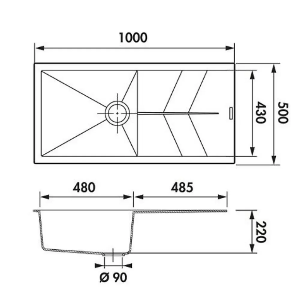 POINTS FORTS : • Évier encastrable 100×50 cm • • Evier vidage manuel • • Meuble sous évier 60 cm minimum • • Évier réversible CARACTÉRISTIQUES : • Équipements inclus : bonde(s), siphon, trop plein, tuyaux d’évacuation • Marque : Ewi • Matériau : Granit • Type de pose : à encastrer • Positionnement égouttoir : réversible • Coloris : Gris • Emplacement robinetterie : pré-marqué • Nombre de bacs : 1 bac • Poids net (Kg) : 17.0 • Trop plein : oui • Sous-meuble : 60 cm • Longueur (mm) : 1000 • Largeur (mm) : 500 • Longueur d’encastrement (mm) : 980 • Largeur d’encastrement (mm) : 480 • Grande dimension cuve 1 (mm) : 480 • Petite dimension cuve 1 (mm) : 430 • Profondeur cuve 1 (mm) : 220 • Diamètre bonde cuve 1 (mm) : 90 • Grande dimension cuve 2 (mm) : non disponible • Petite dimension cuve 2 (mm) : non disponible • Profondeur cuve 2 (mm) : non disponible • Diamètre bonde cuve 2 (mm) : non disponible • Bon à savoir : ce produit ne présente pas de spécificités supplémentaires • Vidage : manuel • Référence vidage : le vidage est déjà inclus