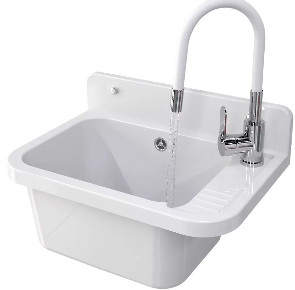 Description du produitLe Gootsteen Granitan Paron est un évier polyvalent et durable, conçu pour les garages, buanderies et chaufferies. Fabriqué en polypropylène robuste, cet évier offre une solution pratique et fonctionnelle adaptée à de nombreux environnements domestiques et professionnels. Son design compact et ses fonctionnalités multiples en font un choix idéal pour les tâches quotidiennes.Caractéristiques principalesMatériau en polypropylène résistant aux produits chimiques et hydrofuge.Dimensions optimales de 50 cm x 34 cm x 31 cm pour un usage polyvalent.Flexible pour une utilisation intérieure et extérieure.Évier équipé d’une ouverture supplémentaire pour connecter une machine à laver ou un lave-vaisselle.Robinet moderne avec bec flexible, rotation à 360 degrés et hauteur réglable.Facilité d’installation grâce à un kit de montage inclus.Design classique et moderne pour s’intégrer dans tout type d’espace.Pourquoi choisir ce produit ?L’évier Granitan Paron offre une combinaison parfaite de fonctionnalité et de durabilité. Grâce à ses matériaux de haute qualité et à son design réfléchi, il peut répondre aux besoins des utilisations les plus variées, que ce soit pour un usage domestique ou commercial. De plus, le kit comprend tous les accessoires nécessaires pour une installation rapide et pratique. Que vous soyez à la recherche d’un évier pour votre garage, buanderie ou atelier, ce produit est une solution fiable et efficace.