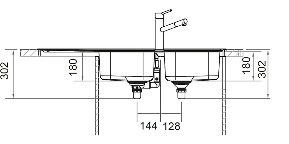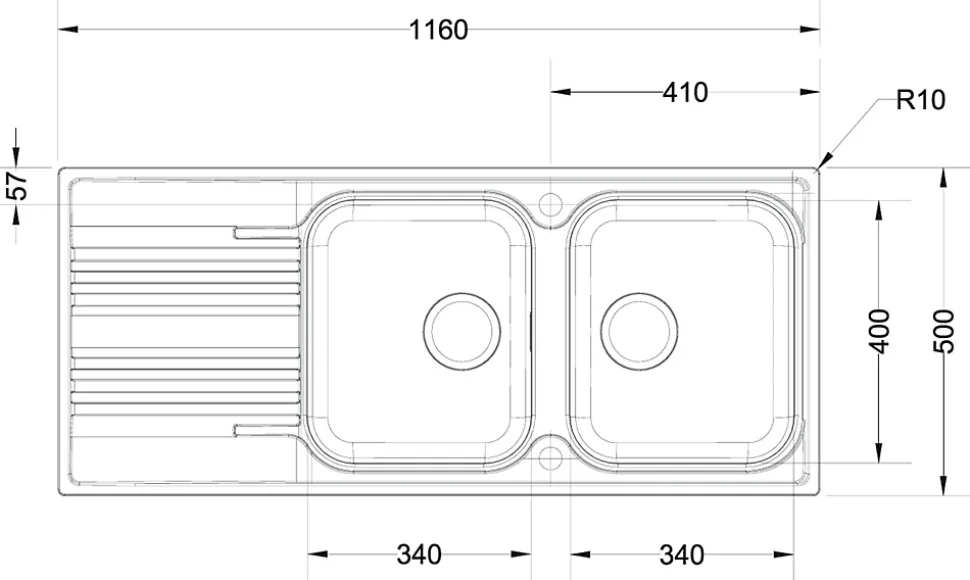 – 90/102- Réversible, avec vidage automatique- Deux perçages- Deux bacsDimensions: 1160x500mm