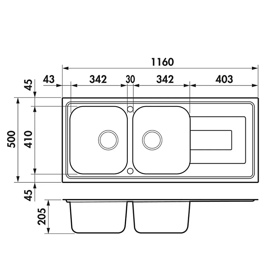 - Évier encastrable 116×50 cm