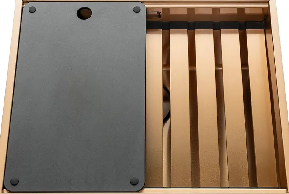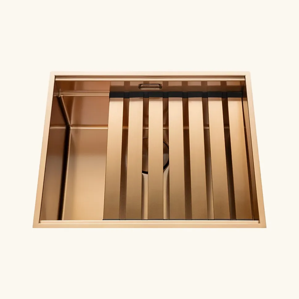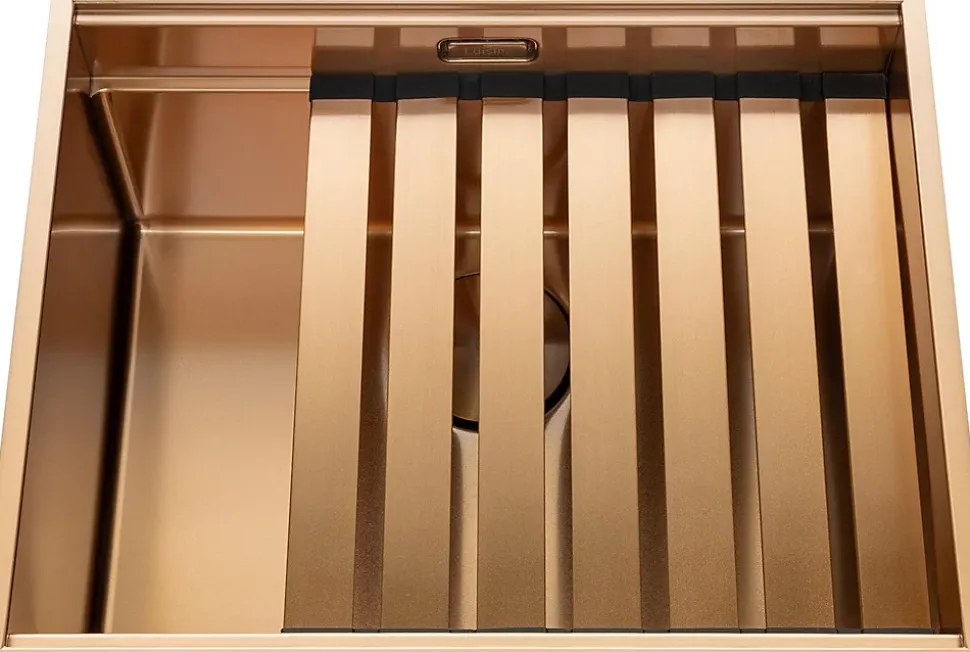 Cuve Sous-Plan Luisina Legato Plus Inox PVD Cuivre Mat EV521 159M – Élégance et FonctionnalitéApportez une touche de sophistication à votre cuisine avec la cuve sous-plan Luisina Legato Plus. Sa finition Inox PVD Cuivre Mat confère à votre espace culinaire une esthétique moderne tout en garantissant une durabilité exceptionnelle.Caractéristiques Principales :✔ Installation Sous-Plan : Offre une intégration harmonieuse avec le plan de travail, créant une surface continue et épurée.✔ Finition Inox PVD Cuivre Mat : Procédé de dépôt physique en phase vapeur (PVD) assurant une résistance accrue aux rayures, à la corrosion et aux variations de température, tout en offrant une teinte élégante et contemporaine.✔ Cuve Profonde et Spacieuse : Dimensions intérieures de 52 x 40 cm avec une profondeur de 24,6 cm, idéales pour accueillir de grands ustensiles et faciliter le nettoyage.✔ Matériau de Haute Qualité : Fabriquée en Luisinox, un acier inoxydable reconnu pour sa robustesse et sa facilité d’entretien.