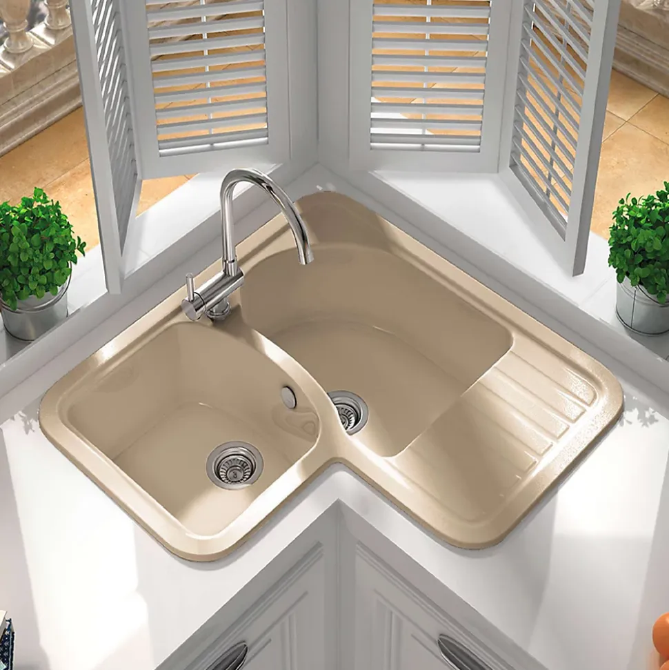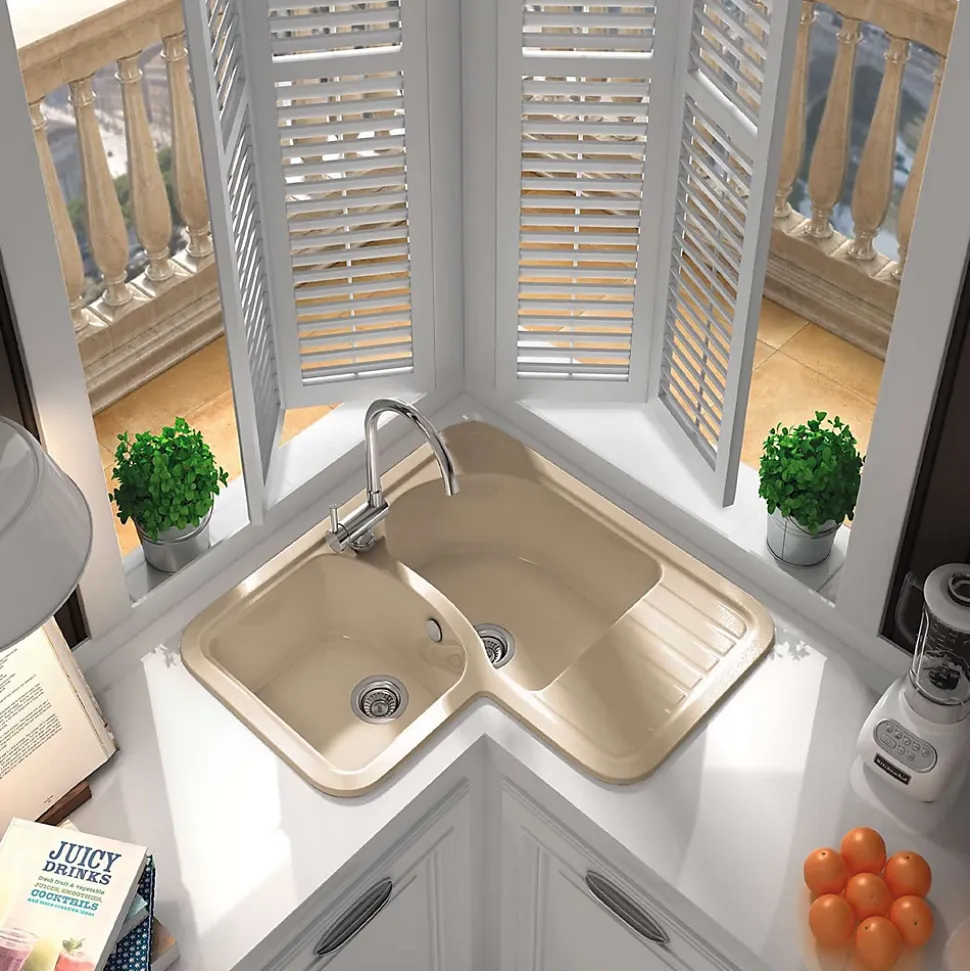 - Evier d’angle pour maximiser l’espace sur votre plan de travail