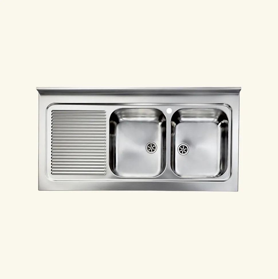 POINTS FORTS : • Evier a poser 120×60 cm • • Se pose sur un meuble sous évier 120 cm • • Evier vidage manuel • • Évier non réversible CARACTÉRISTIQUES : • Équipements inclus : bonde(s), siphon, trop plein, tuyaux d’évacuation • Marque : sans marque • Matériau : Inox • Type de pose : à poser • Positionnement égouttoir : gauche • Coloris : Inox • Emplacement robinetterie : percé • Nombre de bacs : 2 bacs • Poids net (Kg) : 5.74 • Trop plein : oui • Sous-meuble : 120 cm • Longueur (mm) : 1200 • Largeur (mm) : 600 • Longueur d’encastrement (mm) : non disponible • Largeur d’encastrement (mm) : • Grande dimension cuve 1 (mm) : 410 • Petite dimension cuve 1 (mm) : 342 • Profondeur cuve 1 (mm) : 190 • Diamètre bonde cuve 1 (mm) : 60 • Grande dimension cuve 2 (mm) : 410 • Petite dimension cuve 2 (mm) : 342 • Profondeur cuve 2 (mm) : 190 • Diamètre bonde cuve 2 (mm) : 60 • Bon à savoir : évier à poser livré sans pattes de fixation • Vidage : manuel • Référence vidage : le vidage est déjà inclus