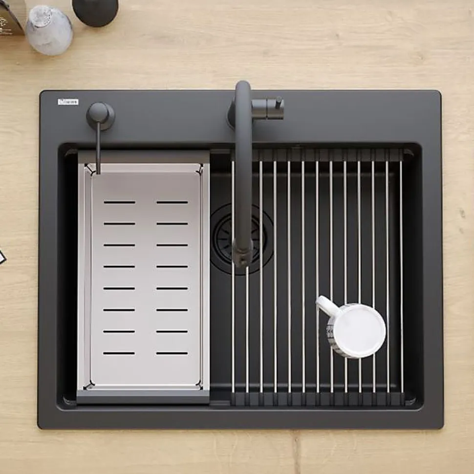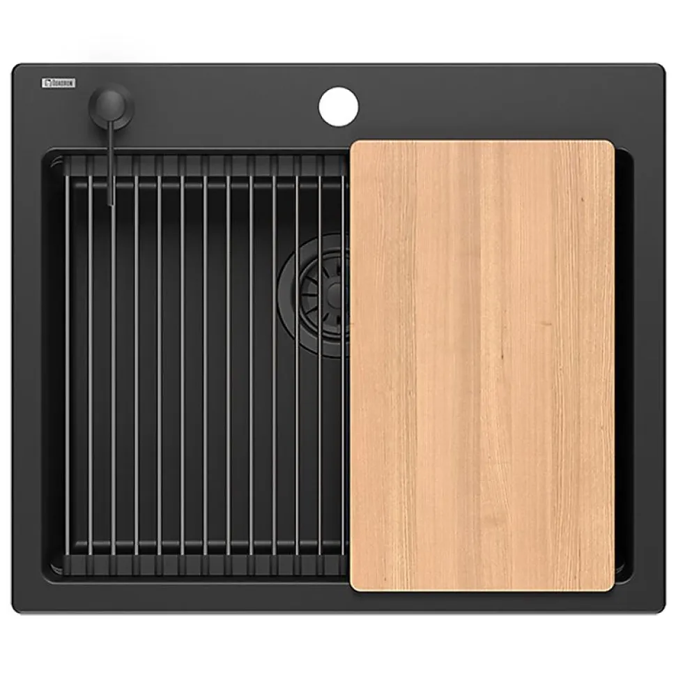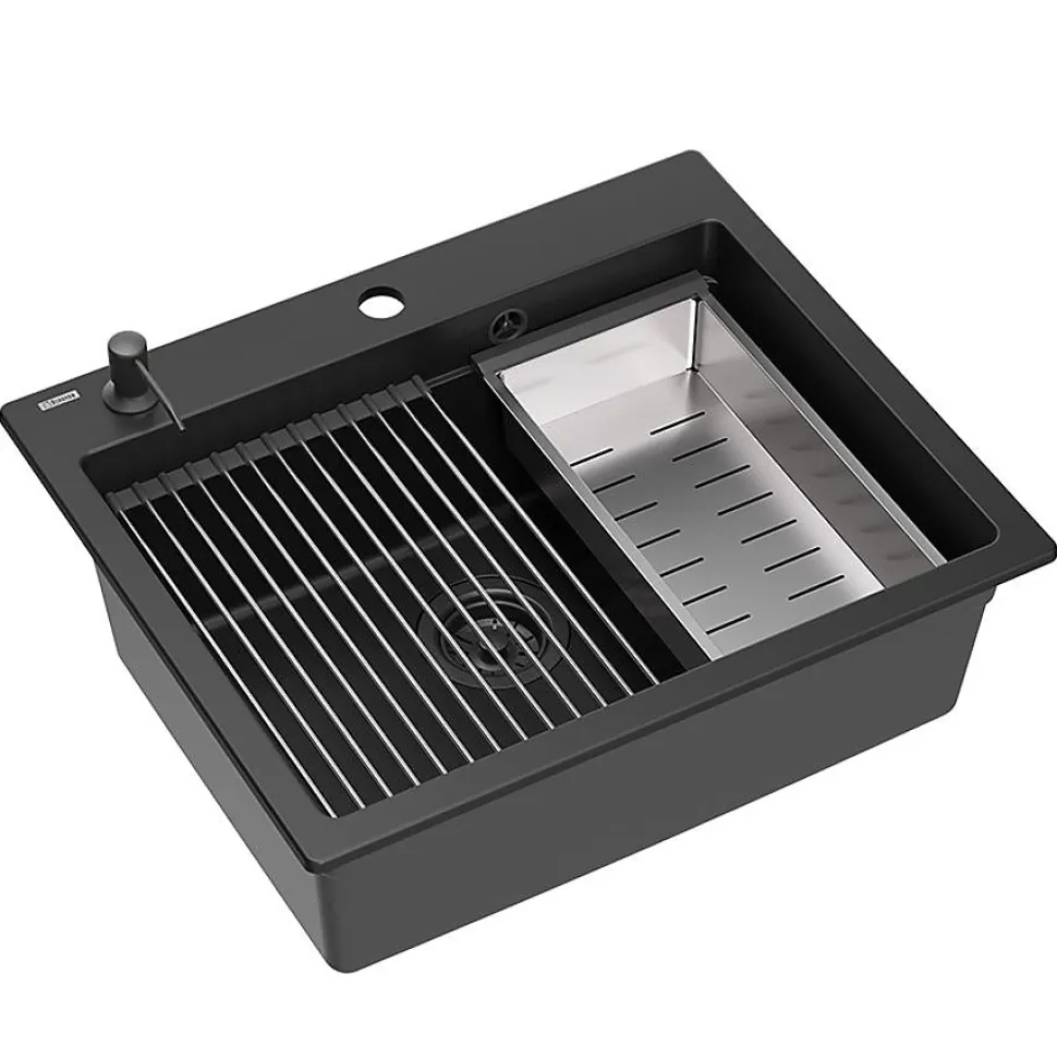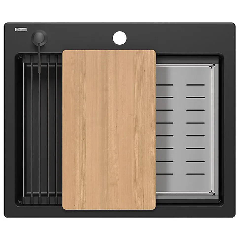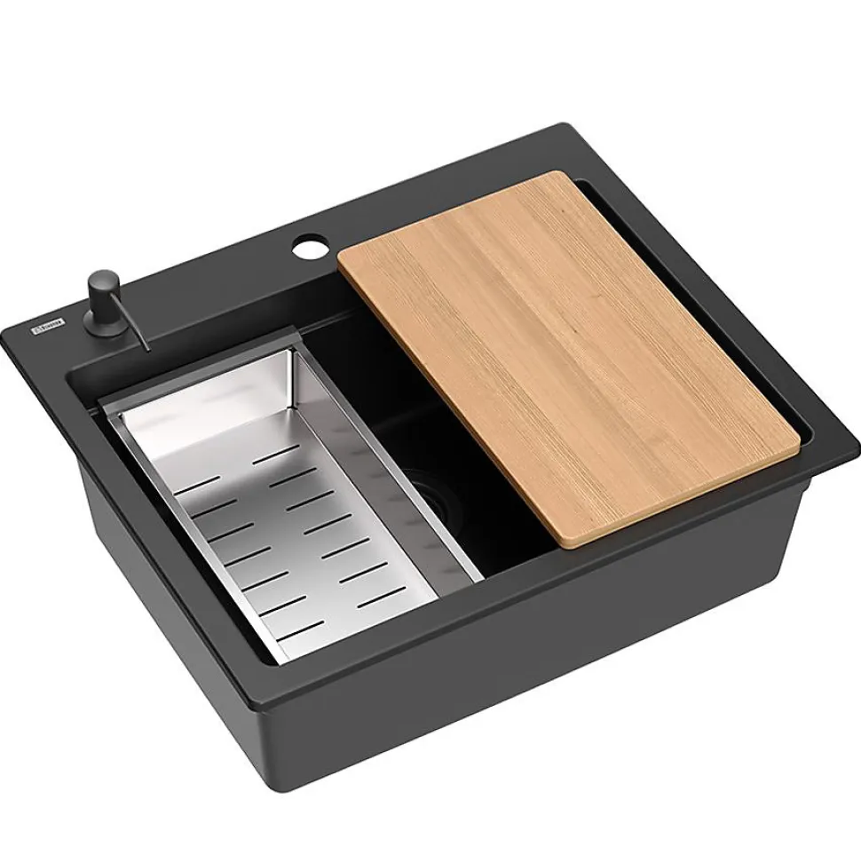 L’évier en granit au design minimaliste et moderne s’intègre dans le design de n’importe quelle cuisine. La cuve profonde et spacieuse offre un grand confort d’utilisation. L’évier que nous proposons est un excellent choix pour les clients qui bénéficient de la qualité et du savoir-faire. La forme intemporelle, l’utilisation de matériaux et de technologies de premier ordre, le grand design et la compatibilité des solutions utilisées assurent un résultat final parfait et remplissent tout espace de cuisine. Plusieurs variantes de couleurs sont disponibles. Ce modèle est très généreusement équipé d’accessoires de cuisine supplémentaires. L’évier comprend un distributeur de liquide, une planche à découper en bambou, un égouttoir télescopique et un tapis roulant en acier et en silicone.
