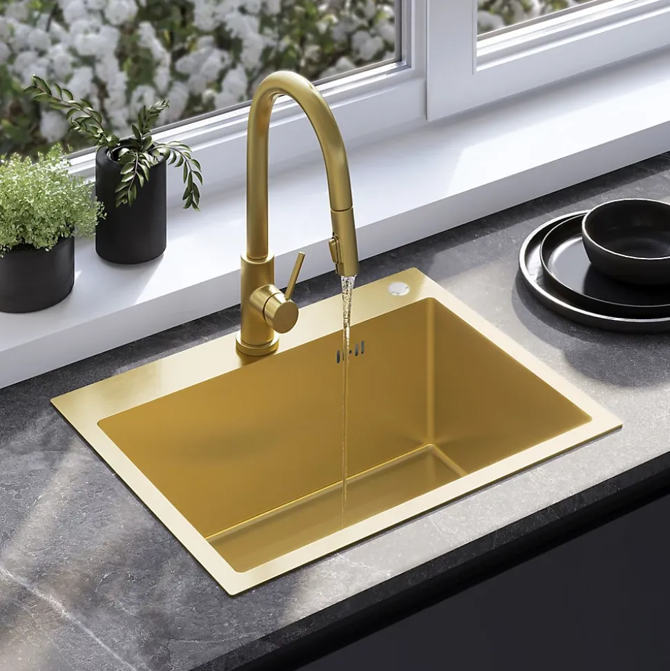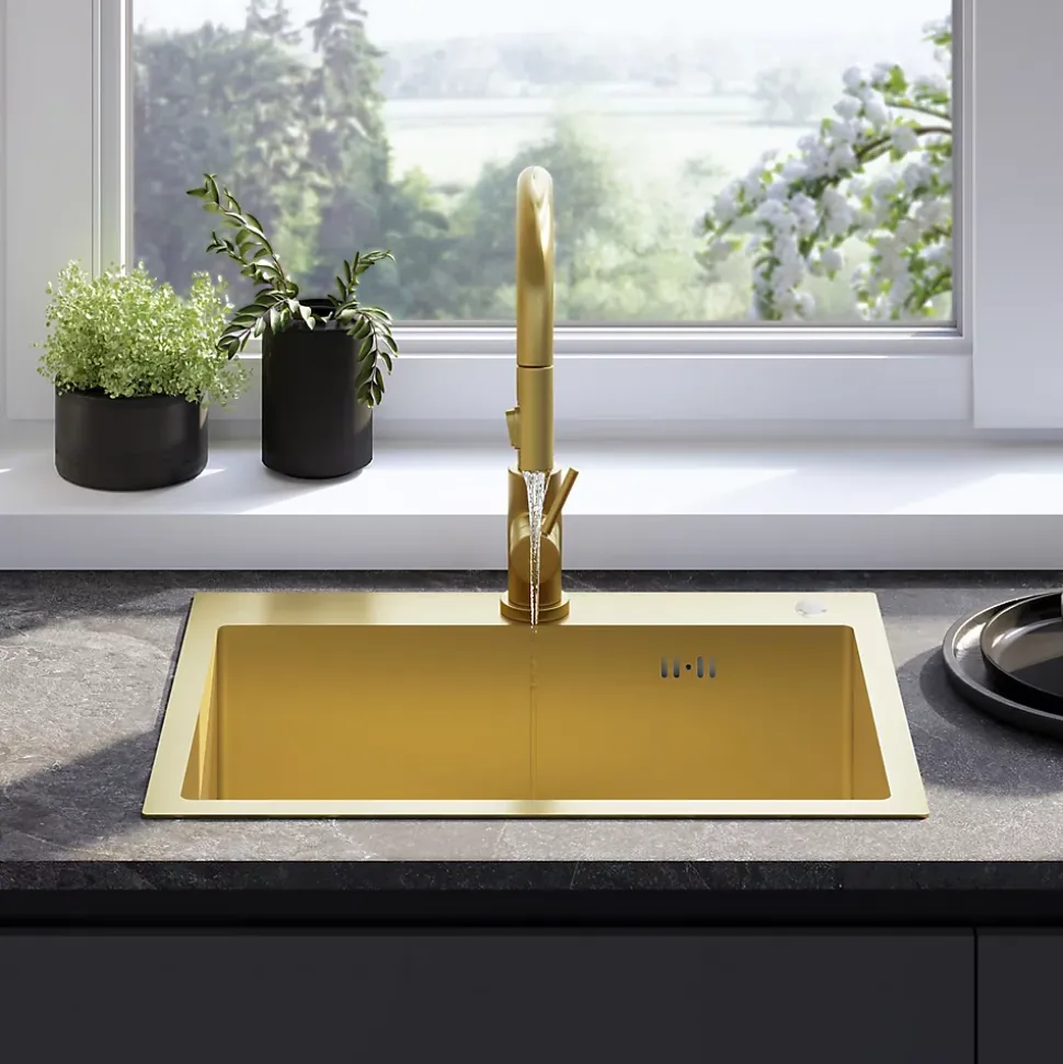 Avec son look minimaliste et moderne, l’évier de cuisine avec robinet mitigeur s’intégrera dans le design de n’importe quelle cuisine. Complété par un mitigeur à bec flexible, il crée un poste de travail complet dans la zone humide. Le produit est doté d’une bonde à la teinte assortie, ce qui confère à l’ensemble un aspect très cohérent et élégant. Le siphon, fourni avec l’évier, est un modèle pratique qui permet d’économiser de l’espace. Grâce à la disposition du tuyau d’évacuation, il est possible de créer un espace de rangement supplémentaire dans le placard sous l’évier pour les paquets de détergents ou les poubelles. Le matériau hygiénique et la facilité de nettoyage des surfaces lisses donnent à l’évier un aspect impeccable et empêchent la prolifération microbienne.