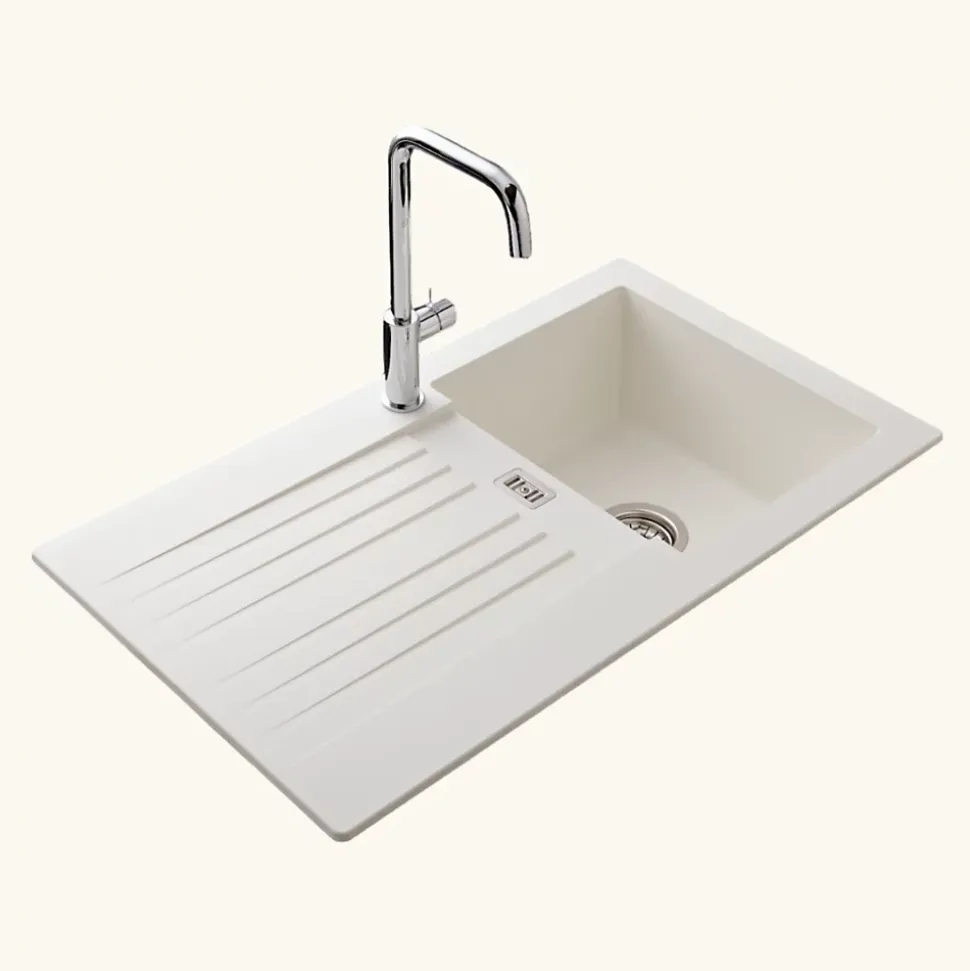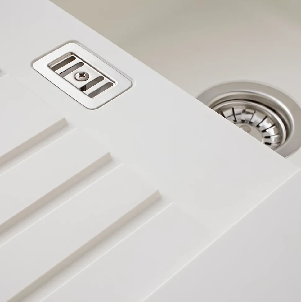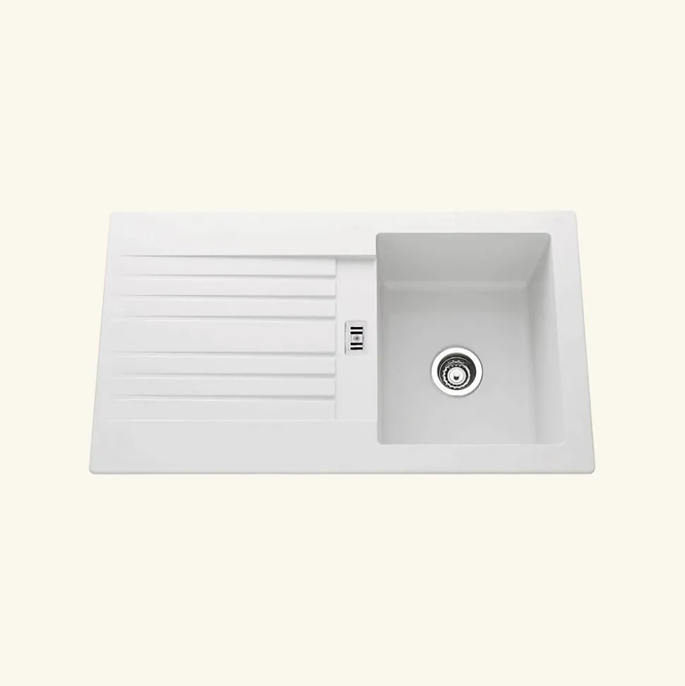 POINTS FORTS : • Évier encastrable 86×50 cm •• Meuble sous évier 50 cm minimum •• Evier vidage manuel •• Évier réversible CARACTÉRISTIQUES : • Équipements inclus : bonde(s), siphon, trop plein, tuyaux d’évacuation • Marque : sans marque • Matériau : Résine • Type de pose : à encastrer • Positionnement égouttoir : réversible • Coloris : Blanc • Emplacement robinetterie : non percé • Nombre de bacs : 1 bac • Poids net (Kg) : 5.98 • Trop plein : oui • Sous-meuble : 50 cm • Longueur (mm) : 860 • Largeur (mm) : 500 • Longueur d’encastrement (mm) : 480 • Largeur d’encastrement (mm) : 840 • Grande dimension cuve 1 (mm) : 400 • Petite dimension cuve 1 (mm) : 320 • Profondeur cuve 1 (mm) : 195 • Diamètre bonde cuve 1 (mm) : 90 • Grande dimension cuve 2 (mm) : non disponible • Petite dimension cuve 2 (mm) : non disponible • Profondeur cuve 2 (mm) : non disponible • Diamètre bonde cuve 2 (mm) : non disponible • Bon à savoir : ce produit ne présente pas de spécificités supplémentaires • Vidage : manuel • Référence vidage : le vidage est déjà inclus
