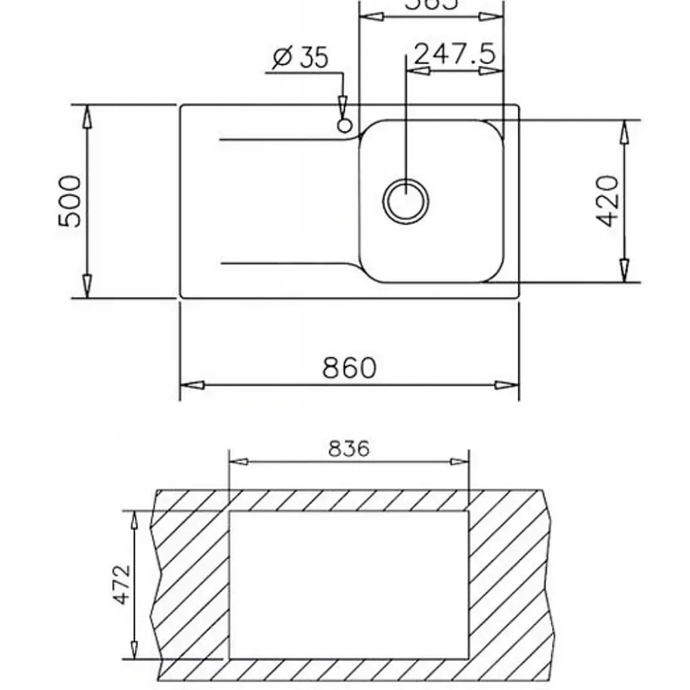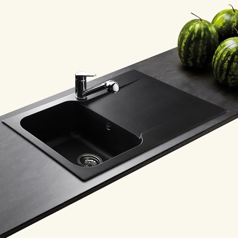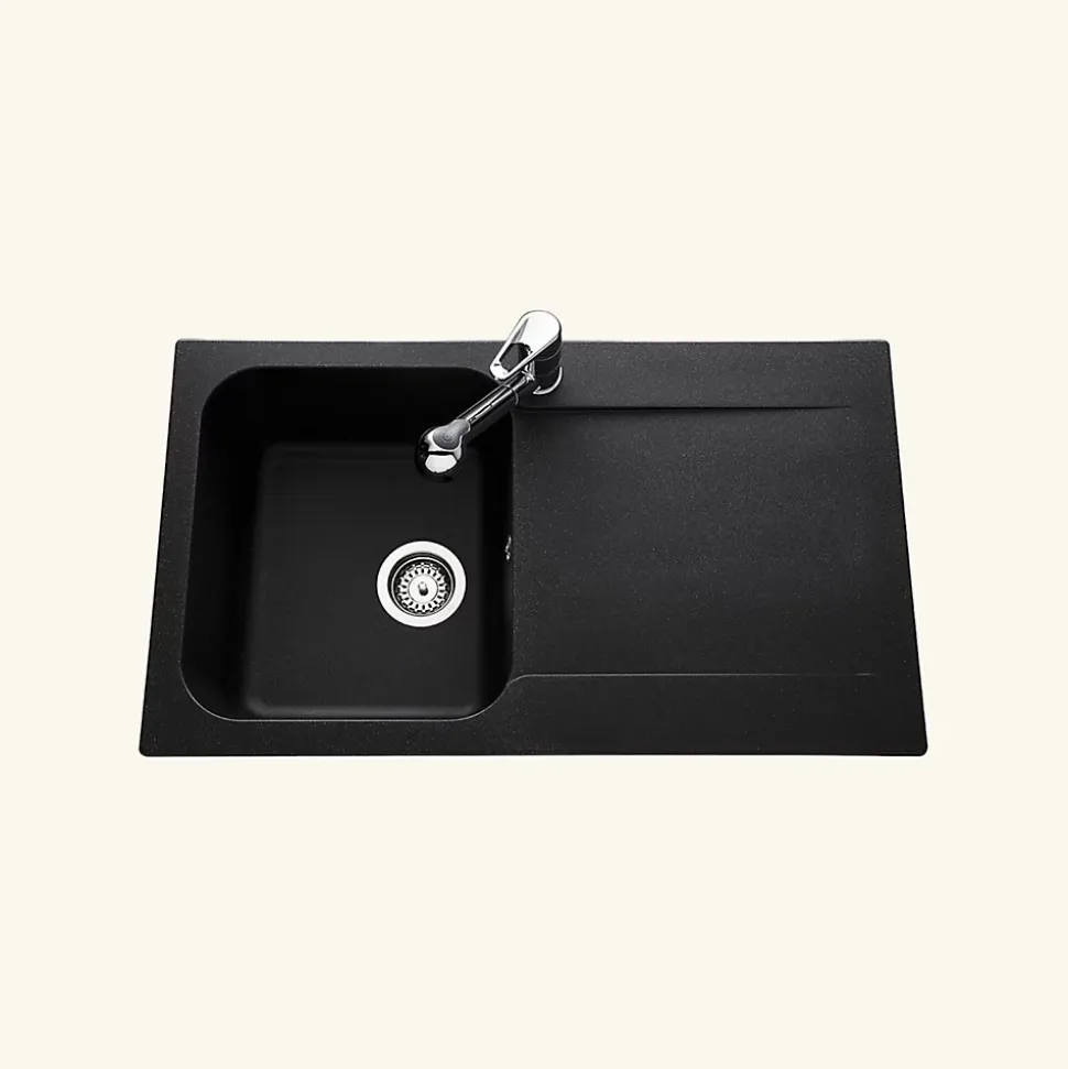 POINTS FORTS : • Évier encastrable 86×50 cm • • Meuble sous évier 45 cm minimum • • Evier vidage manuel • • Évier réversible CARACTÉRISTIQUES : • Équipements inclus : bonde(s), siphon, trop plein, tuyaux d’évacuation • Marque : Ewi • Matériau : Résine • Type de pose : à encastrer • Positionnement égouttoir : réversible • Coloris : Noir • Emplacement robinetterie : non percé • Nombre de bacs : 1 bac • Poids net (Kg) : 5.6 • Trop plein : oui • Sous-meuble : 45 cm • Longueur (mm) : 860 • Largeur (mm) : 500 • Longueur d’encastrement (mm) : 836 • Largeur d’encastrement (mm) : 472 • Grande dimension cuve 1 (mm) : 420 • Petite dimension cuve 1 (mm) : 365 • Profondeur cuve 1 (mm) : 210 • Diamètre bonde cuve 1 (mm) : 90 • Grande dimension cuve 2 (mm) : non disponible • Petite dimension cuve 2 (mm) : non disponible • Profondeur cuve 2 (mm) : non disponible • Diamètre bonde cuve 2 (mm) : non disponible • Bon à savoir : ce produit ne présente pas de spécificités supplémentaires • Vidage : manuel • Référence vidage : le vidage est déjà inclus