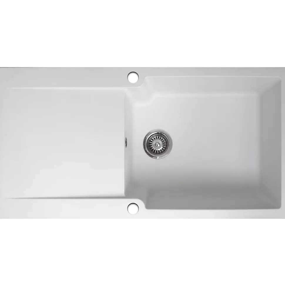 Cet évier est le rêve de toute personne qui souhaite avoir une cuisine parfaitement élégante. En résine blanche, il détient une cuve extra large. Les pattes de fixation sont incluses et il est facilement posable. DESIGN ET CARACTERISTIQUES : – Produit : Evier – Matière : Résine (combiné de fibre de verre et de résine de synthèse résistant aux chocs) – Couleur : Blanc – Type de produit : 1 grande cuve + 1 égouttoir – Type de montage : A poser (dans un caisson de 60cm de largeur minimum) – Résistance : Jusqu’à 230° sans marquer – Réversible : Oui – Pré percé : Oui (double trous de 35mm) – Option d’évacuation : Siphon avec raccord pour lave-vaisselle et machine à laver inclus – Kit de fixation : Inclus avec pattes de fixation – Vidage : Automatique avec trop-plein inclus (bonde à panier pour filtrage de résidus fournie) – Notice d’installation : Incluse GARANTIE : – Evier : 15 ans – Pièces détachées : Pas de garantie DIMENSIONS – Longueur : 1000mm – Largeur : 500mm – Profondeur : 212mm – Côtes d’encastrement (en cm) : 97, 6L x 4,6 H – Dimensions de la cuve ( en cm) : 52,5 L x 43 H x 21 P Conseils d’entretien : – Il est conseillé de nettoyer le produit avec une solution savonneuse (type liquide vaisselle), ne jamais utiliser de substances acides ou abrasives. – Les taches de calcaire peuvent être évitées en séchant la robinetterie après son utilisation. – Rincer à l’eau claire – Utiliser un chiffon doux – Eviter d’utiliser des produits abrasifs: détergent et solvants