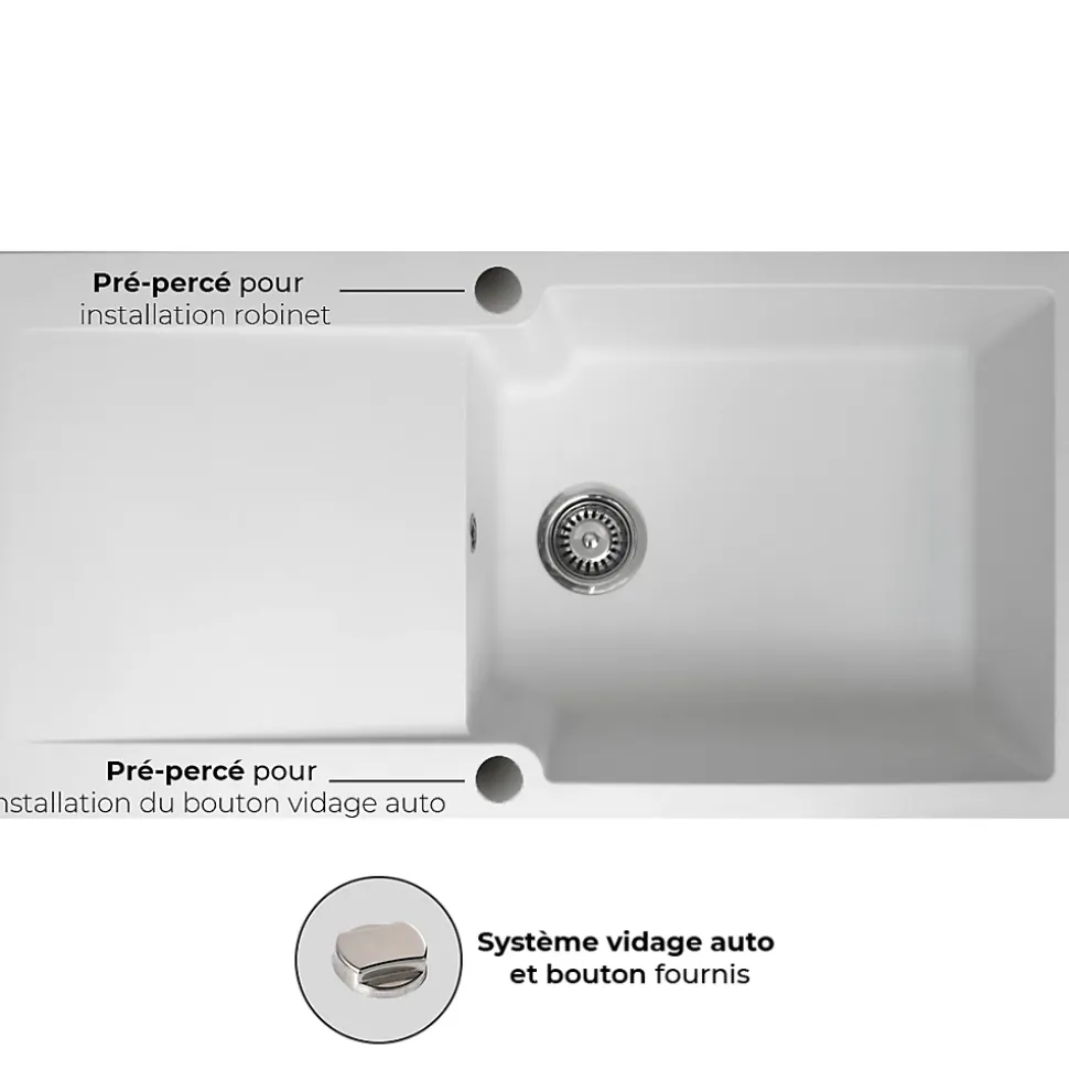 - Vidage automatique avec trop-plein inclus