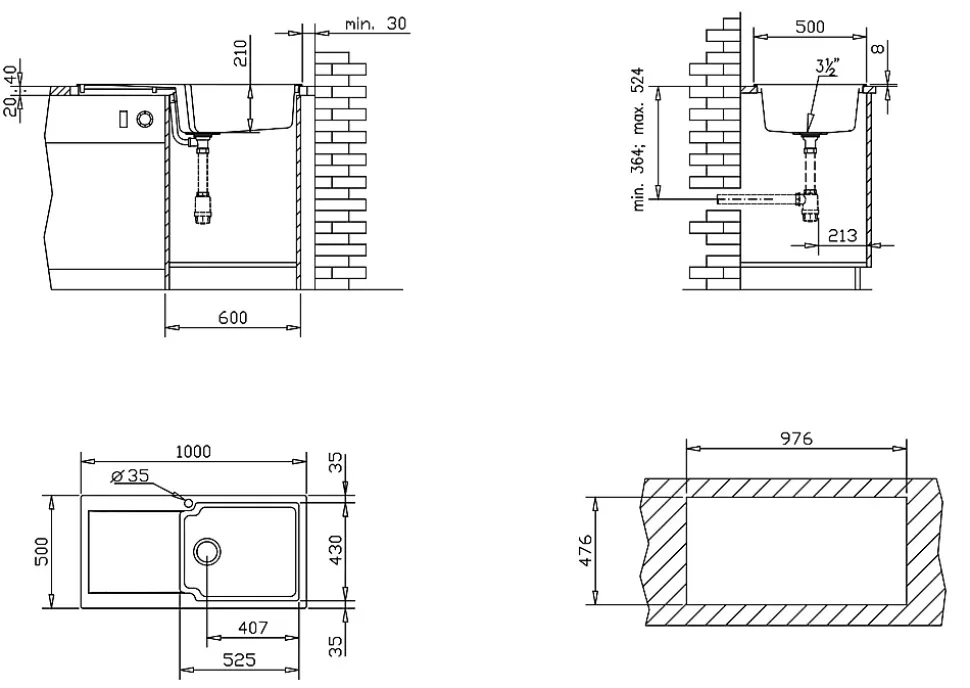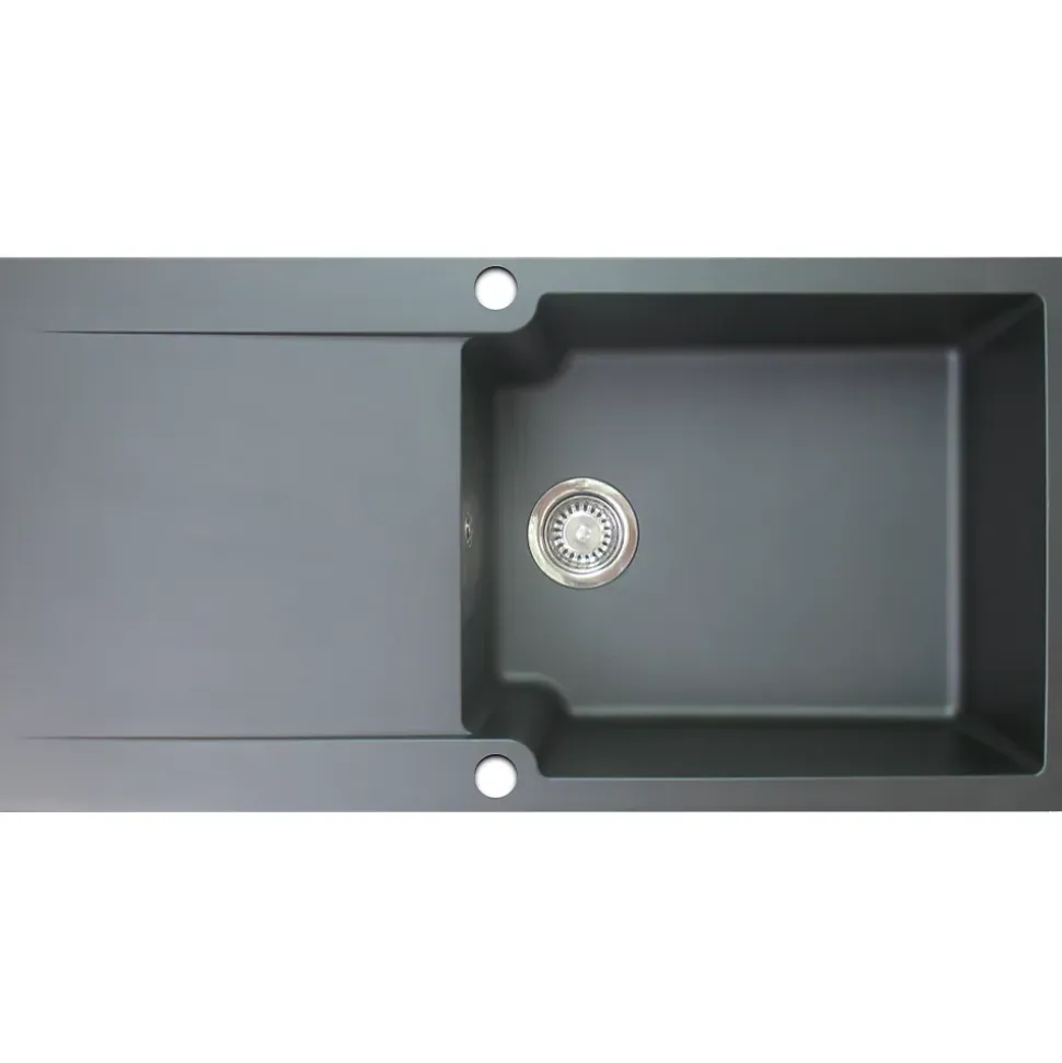 Cet évier est le rêve de toute personne qui souhaite avoir une cuisine parfaitement élégante. En résine blanche, il détient une cuve extra large. Les pattes de fixation sont incluses et il est facilement posable. DESIGN ET CARACTERISTIQUES : – Produit : Evier – Matière : Résine (combiné de fibre de verre et de résine de synthèse résistant aux chocs) – Couleur : Blanc – Type de produit : 1 grande cuve + 1 égouttoir – Type de montage : A poser (dans un caisson de 60cm de largeur minimum) – Résistance : Jusqu’à 230° sans marquer – Réversible : Oui – Pré percé : Oui (double trous de 35mm) – Option d’évacuation : Siphon avec raccord pour lave-vaisselle et machine à laver inclus – Kit de fixation : Inclus avec pattes de fixation – Vidage : Automatique avec trop-plein inclus (bonde à panier pour filtrage de résidus fournie) – Notice d’installation : Incluse GARANTIE : – Evier : 15 ans – Pièces détachées : Pas de garantie DIMENSIONS – Longueur : 1000mm – Largeur : 500mm – Profondeur : 212mm – Côtes d’encastrement (en cm) : 97, 6L x 4,6 H – Dimensions de la cuve ( en cm) : 52,5 L x 43 H x 21 P Conseils d’entretien : – Il est conseillé de nettoyer le produit avec une solution savonneuse (type liquide vaisselle), ne jamais utiliser de substances acides ou abrasives. – Les taches de calcaire peuvent être évitées en séchant la robinetterie après son utilisation. – Rincer à l’eau claire – Utiliser un chiffon doux – Eviter d’utiliser des produits abrasifs: détergent et solvants