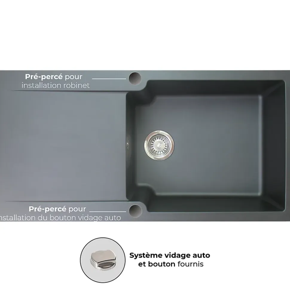 - Vidage automatique avec trop-plein inclus