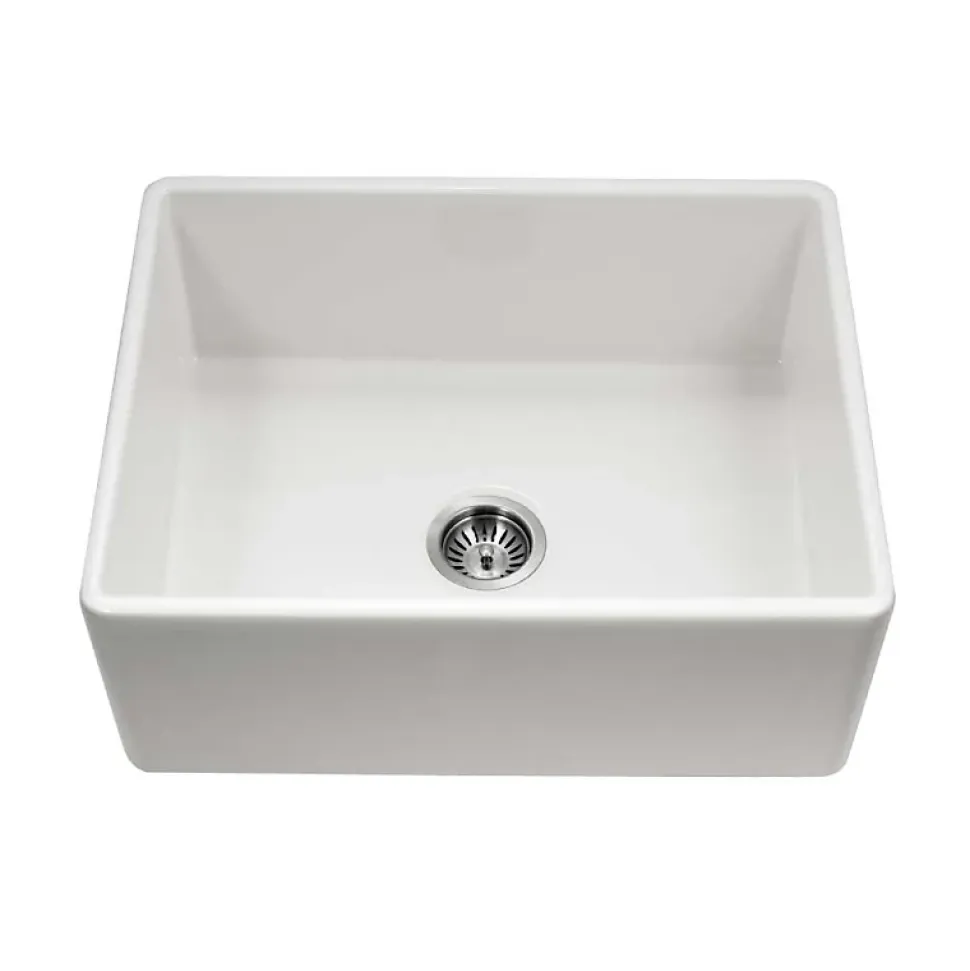 Ce timbre d’office est un réel atout déco pour votre cuisine ou votre buanderie par sa qualité de finition.Esthétique, pratique , cet évier se pose directement sur un plan de travail ou un meuble.Complètement lisse et plat vous aurez la possibilité également de l’ajuster en fonction de la hauteur de votre plan de travail !La qualité de la céramique vous facilitera le nettoyage !Ce timbre d’office ne dispose pas de trop plein, ni de plage de robinetterie. Il est émaillé sur les 4 faces. CARACTÉRISTIQUES Nombre de bacs 1 Bac.Matière Céramique.Type de pose à poser.Réversible Non.Egouttoir Non.Coloris Blanc.Plage de robinetterie Non.Vidage Manuel.Equipements inclus x1 Bonde à panier pour évier 1 bac Ø90 mm – Marque Wirquin.x1 Siphon d’évier réglable en hauteur Garde d’eau : 50 mm, Débit : 60 L/mn, Hauteur : 131<176 mm, Sortie Ø40 mm – Marque Wirquin.Poids 35 kg.Garantie 10 ans. DIMENSIONS Hauteur (mm) 254.Largeur (mm) 655.Profondeur (mm) 505.Hauteur cuve (mm) 231.Largeur cuve (mm) 610.Profondeur cuve (mm) 458.Poids (kg) 36. CONSEIL DE POSE Optez pour un sous meuble de largeur 70 cm minimum et des fileurs de finitions assortis à votre meuble.Un fileur permet de combler l’espace entre le meuble et votre évier.