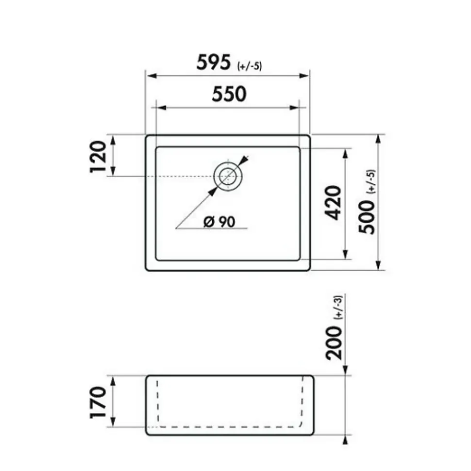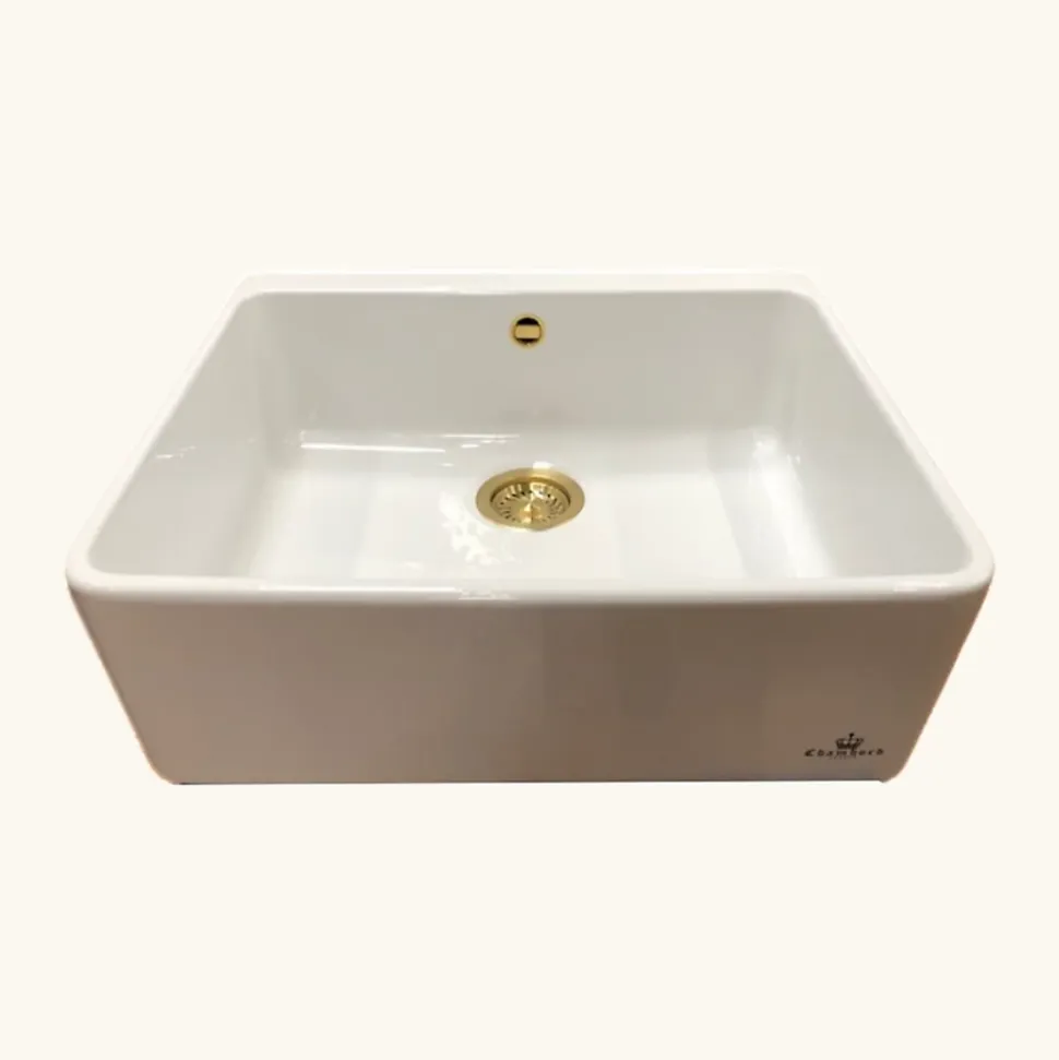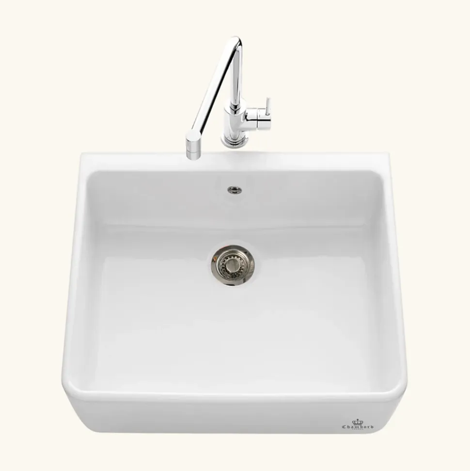 POINTS FORTS : • Évier timbre 60×50 cm • • Convient à un meuble sous évier 60 cm • • Evier vidage manuel • • Évier sans égouttoir CARACTÉRISTIQUES : • Équipements inclus : bonde(s), siphon, trop plein, tuyaux d’évacuation • Marque : Chambord • Matériau : Céramique • Type de pose : à poser • Positionnement égouttoir : sans égouttoir • Coloris : Blanc • Emplacement robinetterie : non percé • Nombre de bacs : 1 bac • Poids net (Kg) : 24.2 • Trop plein : oui • Sous-meuble : 60 cm • Longueur (mm) : 595 (+/-5 mm) • Largeur (mm) : 500 (+/-5 mm) • Longueur d’encastrement (mm) : non disponible • Largeur d’encastrement (mm) : • Grande dimension cuve 1 (mm) : 550 • Petite dimension cuve 1 (mm) : 420 • Profondeur cuve 1 (mm) : 200 (+/-3 mm) • Diamètre bonde cuve 1 (mm) : 90 • Grande dimension cuve 2 (mm) : non disponible • Petite dimension cuve 2 (mm) : non disponible • Profondeur cuve 2 (mm) : non disponible • Diamètre bonde cuve 2 (mm) : non disponible • Bon à savoir : Non émaillé à l’arrière. Une variation de +/- 6% sur les dimensions est acceptable. Vidage doré compatible en option CUIPD412 (ean 8000000093707). Un bouton de bonde avec un marquage Chambord est livrée avec ce vidage. Vous pourrez choisir de la clipser ou non au panier bouchon. • Vidage : manuel • Référence vidage : le vidage est déjà inclus