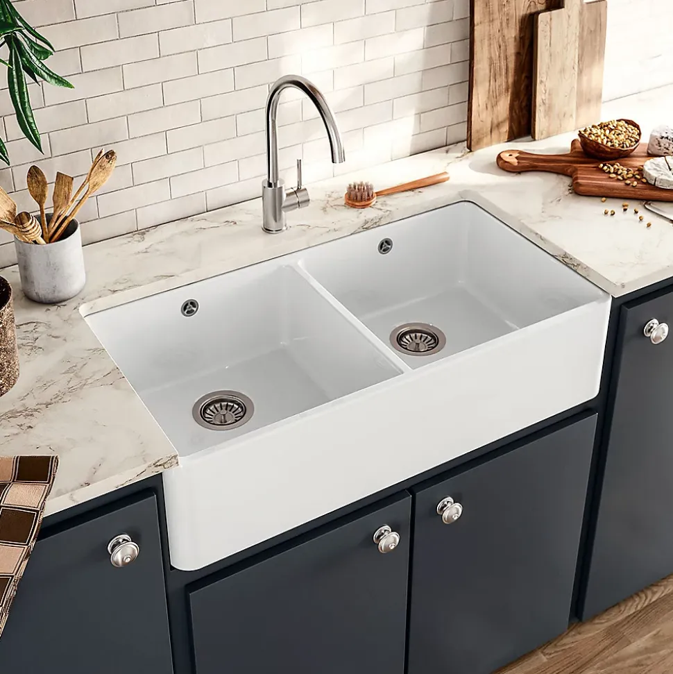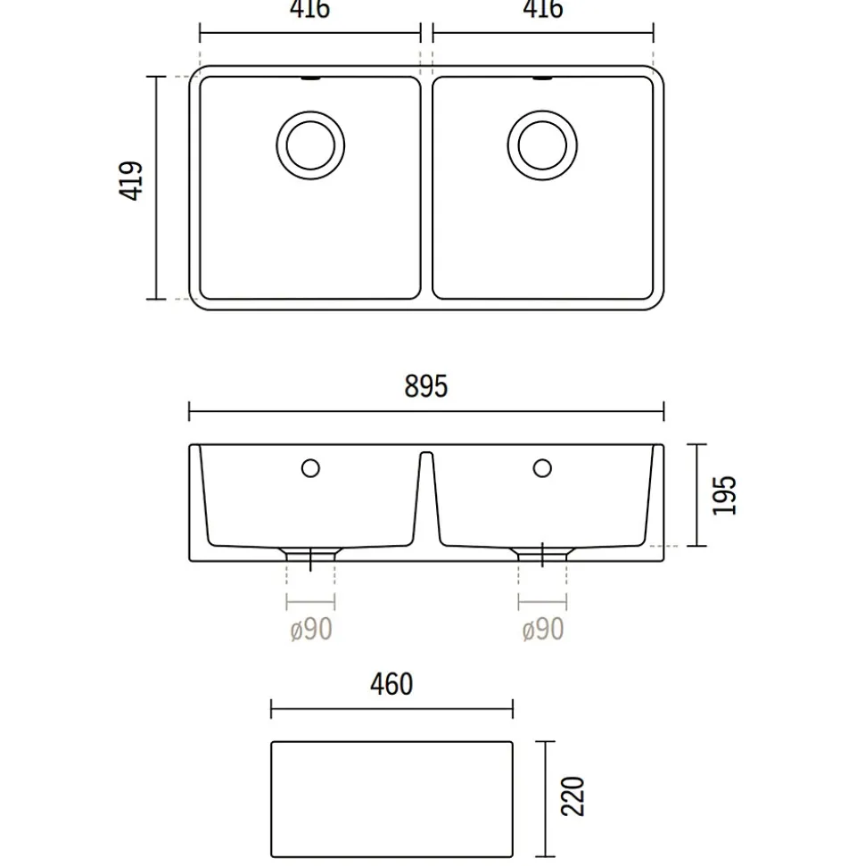 POINTS FORTS : • Évier timbre 89.5×46 cm • • Convient à un meuble sous évier 90 cm • • Evier vidage manuel • • Évier à poser CARACTÉRISTIQUES : • Équipements inclus : bonde(s), trop plein, tuyaux d’évacuation • Marque : Sanindusa • Matériau : Céramique • Type de pose : à poser • Positionnement égouttoir : sans égouttoir • Coloris : Blanc • Emplacement robinetterie : non percé • Nombre de bacs : 2 bacs • Poids net (Kg) : 38.0 • Trop plein : oui • Sous-meuble : 90 cm • Longueur (mm) : 895 • Largeur (mm) : 460 • Longueur d’encastrement (mm) : non disponible • Largeur d’encastrement (mm) : • Grande dimension cuve 1 (mm) : 416 • Petite dimension cuve 1 (mm) : 416 • Profondeur cuve 1 (mm) : 195 • Diamètre bonde cuve 1 (mm) : 90 • Grande dimension cuve 2 (mm) : 416 • Petite dimension cuve 2 (mm) : 416 • Profondeur cuve 2 (mm) : 195 • Diamètre bonde cuve 2 (mm) : 90 • Bon à savoir : L’évier est livré sans siphon • Vidage : manuel • Référence vidage : le vidage est déjà inclus