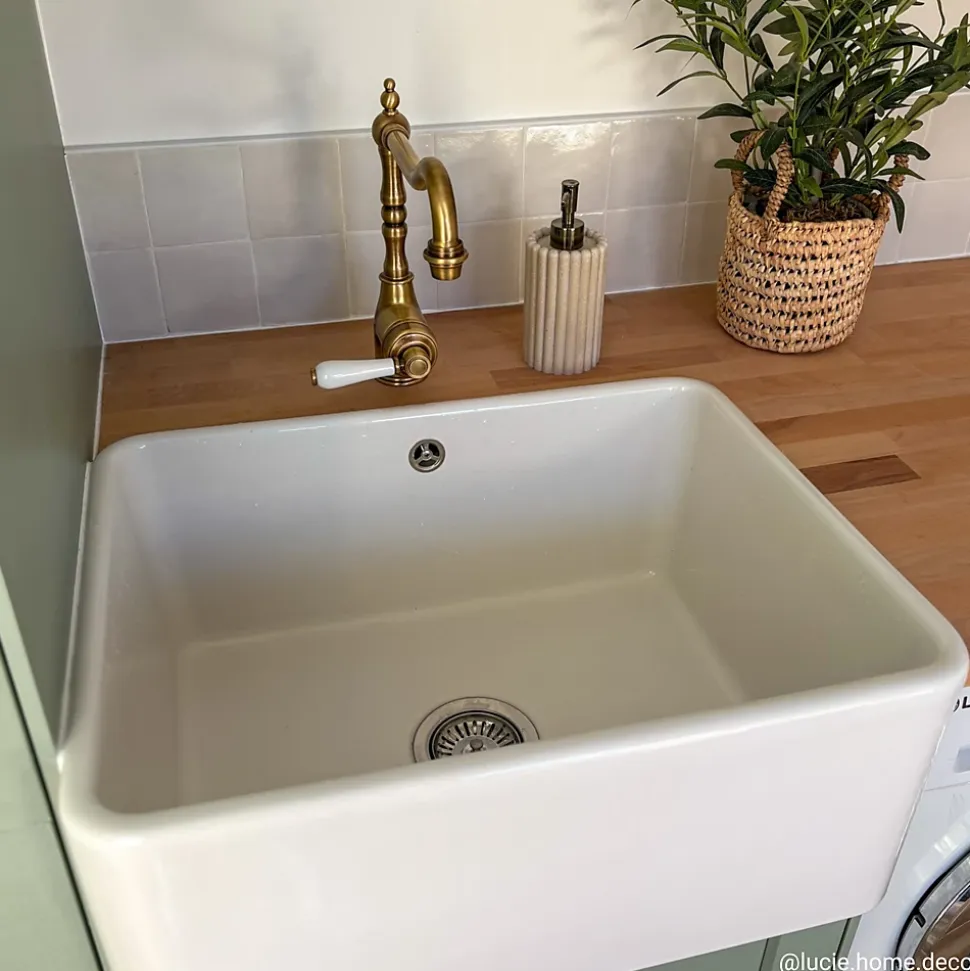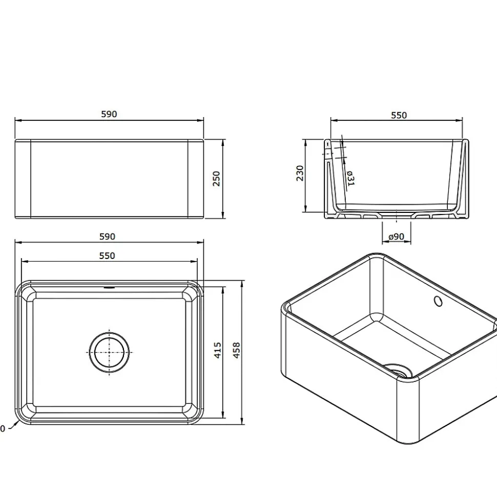 POINTS FORTS : • Évier timbre 59×45,8 cm •• Convient à un meuble sous évier 60 cm •• Evier vidage manuel •• Évier à poser avec cuve profonde CARACTÉRISTIQUES : • Équipements inclus : bonde(s), trop plein, tuyaux d’évacuation • Marque : Sanindusa • Matériau : Céramique • Type de pose : à poser • Positionnement égouttoir : sans égouttoir • Coloris : Blanc • Emplacement robinetterie : non percé • Nombre de bacs : 1 bac • Poids net (Kg) : 35.5 • Trop plein : oui • Sous-meuble : 60 cm • Longueur (mm) : 590 • Largeur (mm) : 458 • Longueur d’encastrement (mm) : non disponible • Largeur d’encastrement (mm) : • Grande dimension cuve 1 (mm) : 55 • Petite dimension cuve 1 (mm) : 415 • Profondeur cuve 1 (mm) : 230 • Diamètre bonde cuve 1 (mm) : 90 • Grande dimension cuve 2 (mm) : non disponible • Petite dimension cuve 2 (mm) : non disponible • Profondeur cuve 2 (mm) : non disponible • Diamètre bonde cuve 2 (mm) : non disponible • Bon à savoir : l´évier est livré sans siphon • Vidage : manuel • Référence vidage : le vidage est déjà inclus