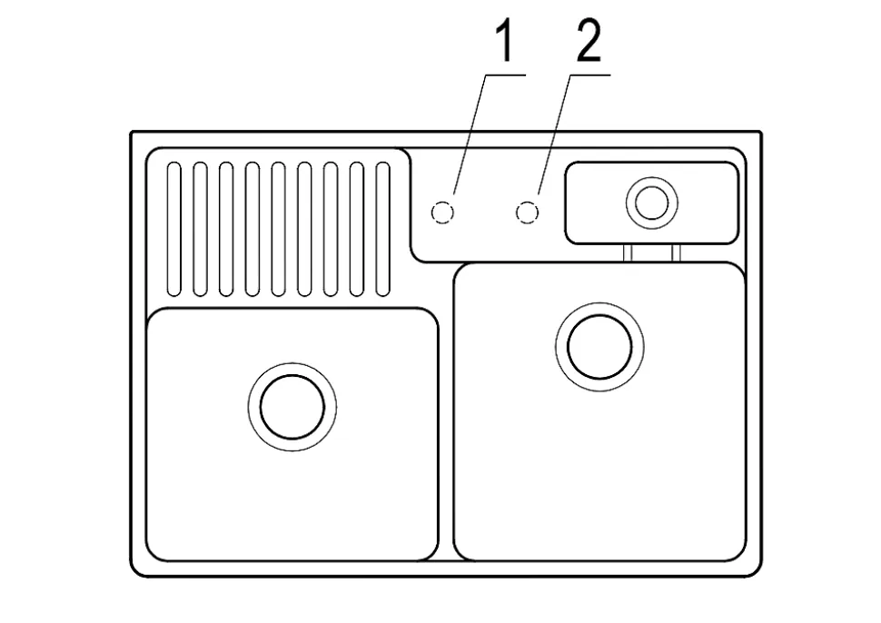 - Avant le montage de l’évier percez les trous de robinet. Reportez-vous aux instructions sur l’installation pour plus de détails