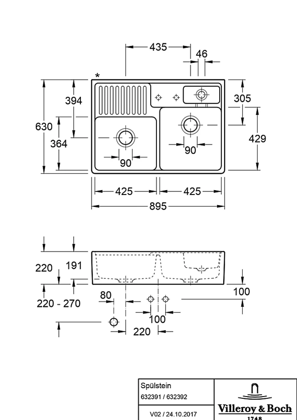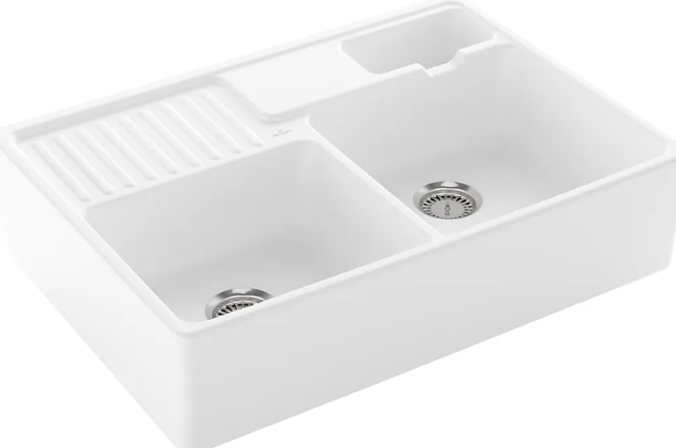 Évier timbre d’office de cuisine à poser 2 bacs Tradition Villeroy & Boch céramique blanc brillant