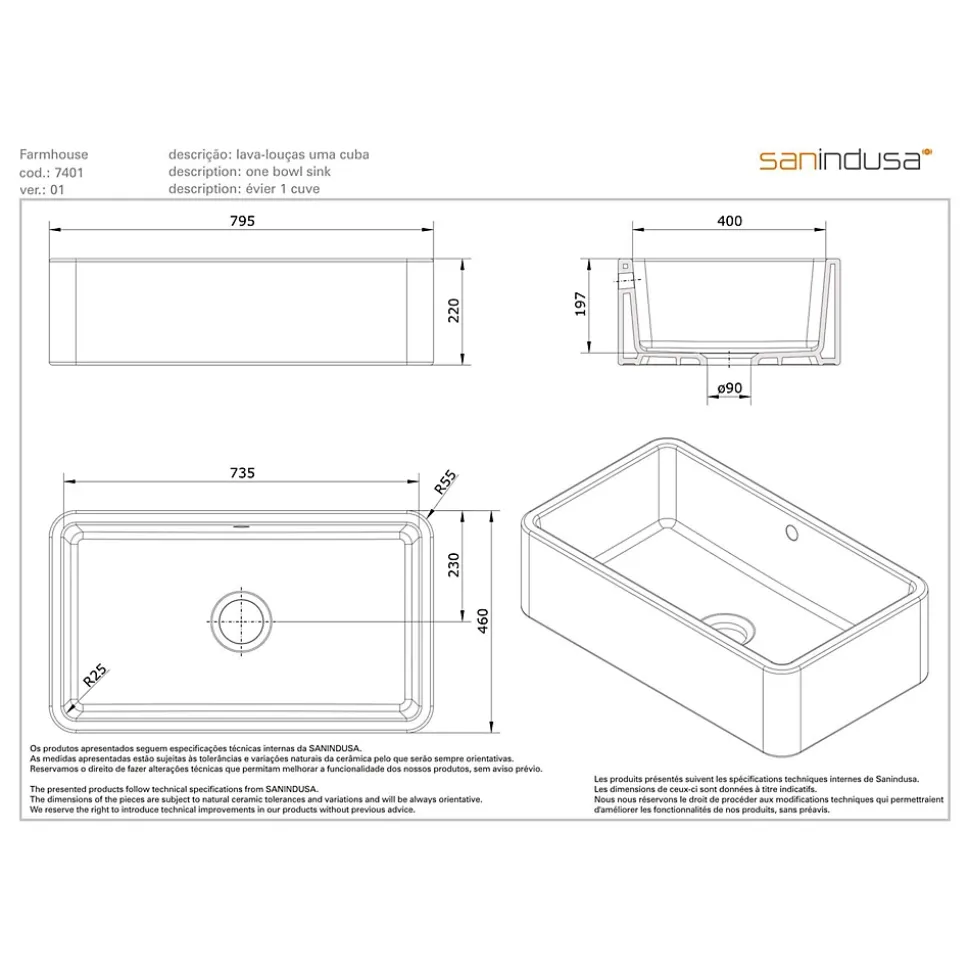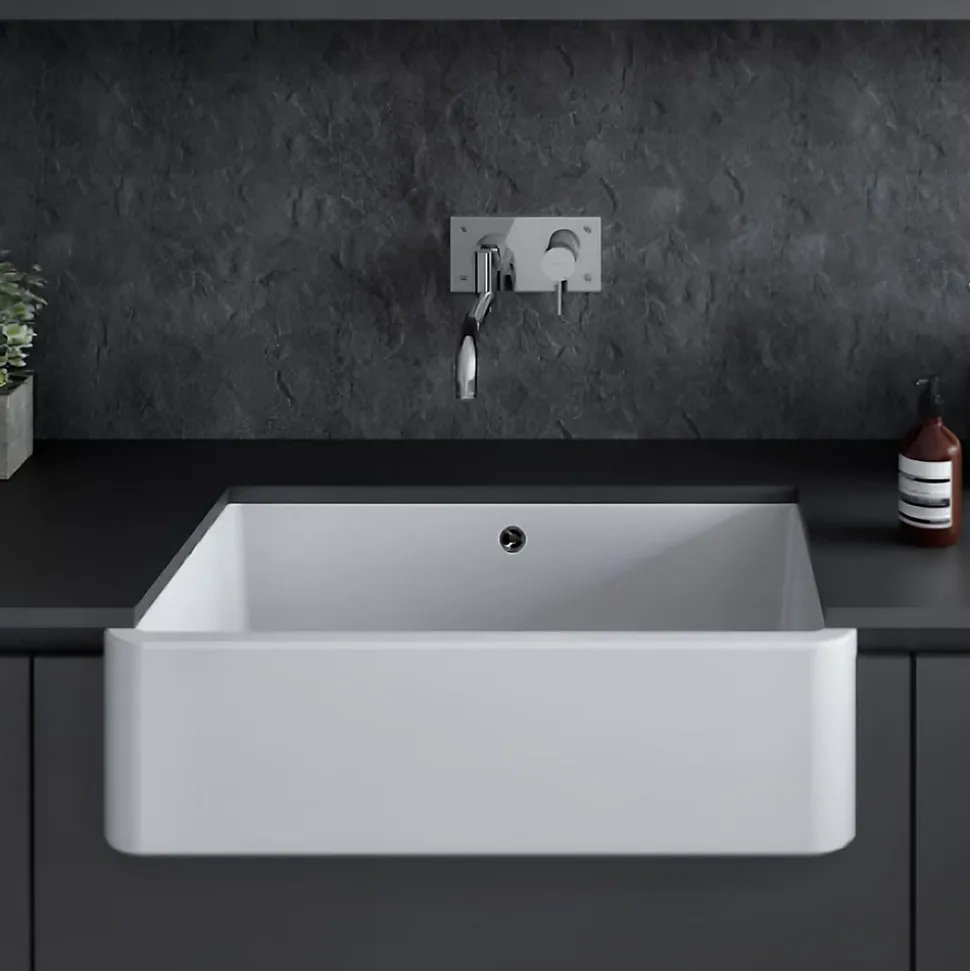 Évier Farmhouse 1 cuve, Série : Farmhouse, Code : 7401, Poids : 37.80 kg, Longueur : 80 cm, Largeur : 46 cm, Hauteur : 22 cm, Matériel : Gres Fin, Couleur : Blanc. Cet article est livré nu sans accessoires