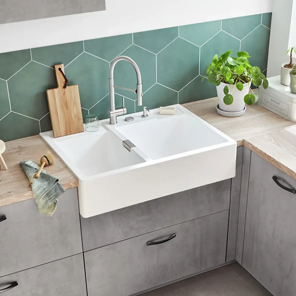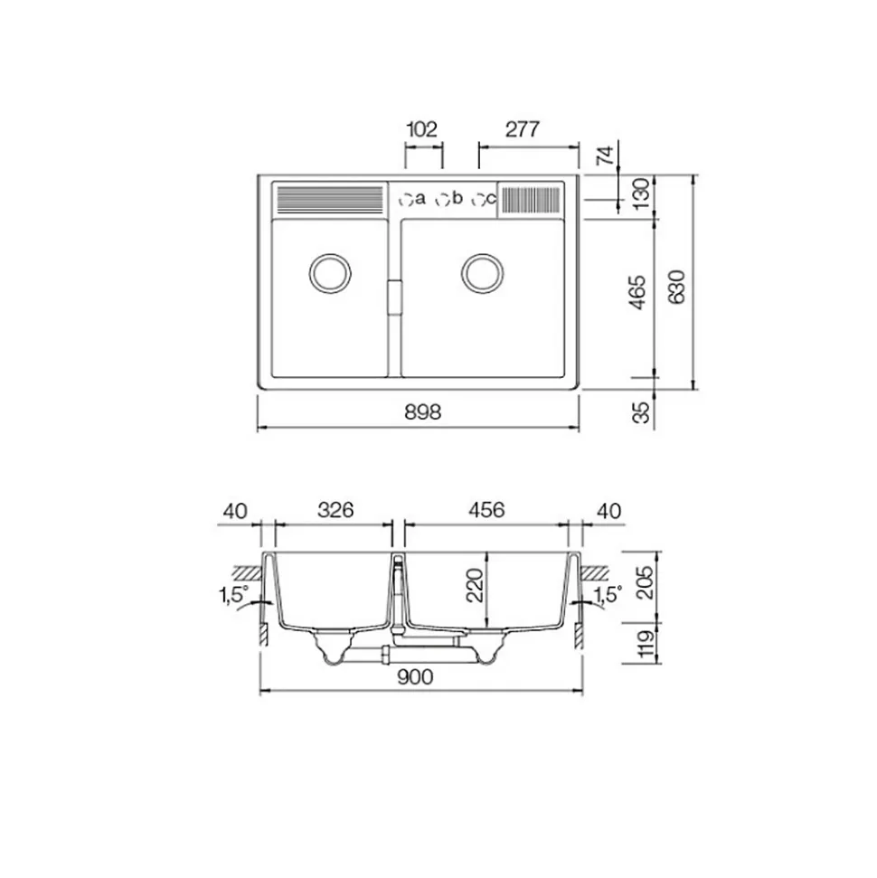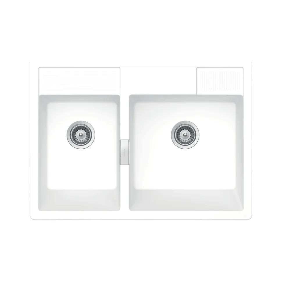POINTS FORTS : • Évier timbre 89,8×63 cm •• Convient à un meuble sous évier de 90 cm •• Evier vidage manuel •• Évier à poser fabriqué en Allemagne CARACTÉRISTIQUES : • Équipements inclus : bonde(s), siphon, trop plein, tuyaux d’évacuation • Marque : Schock • Matériau : Granit • Type de pose : à poser • Positionnement égouttoir : sans égouttoir • Coloris : Blanc • Emplacement robinetterie : pré-marqué • Nombre de bacs : 2 bacs • Poids net (Kg) : 22.0 • Trop plein : oui • Sous-meuble : 90 cm • Longueur (mm) : 898 • Largeur (mm) : 630 • Longueur d’encastrement (mm) : non disponible • Largeur d’encastrement (mm) : • Grande dimension cuve 1 (mm) : 465 • Petite dimension cuve 1 (mm) : 456 • Profondeur cuve 1 (mm) : 220 • Diamètre bonde cuve 1 (mm) : 90 • Grande dimension cuve 2 (mm) : 465 • Petite dimension cuve 2 (mm) : 326 • Profondeur cuve 2 (mm) : 220 • Diamètre bonde cuve 2 (mm) : 90 • Bon à savoir : Livré avec une scie cloche diamant et un vidage chromé / Evier avec finition 3 côtés (pas de face à l’arrière). • Vidage : manuel • Référence vidage : le vidage est déjà inclus