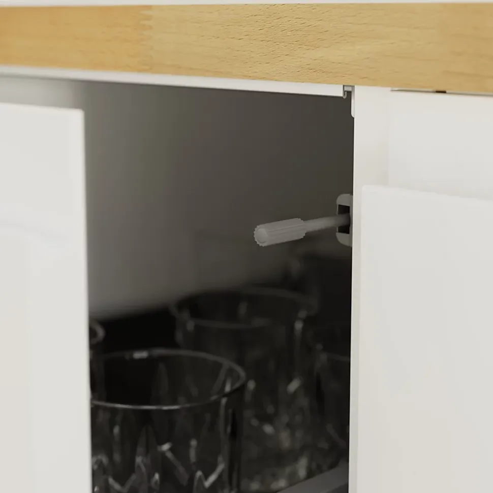 - Recouverte d’un revêtement ultra brillant, la porte résiste à l’humidité et aux taches pour un entretien facile