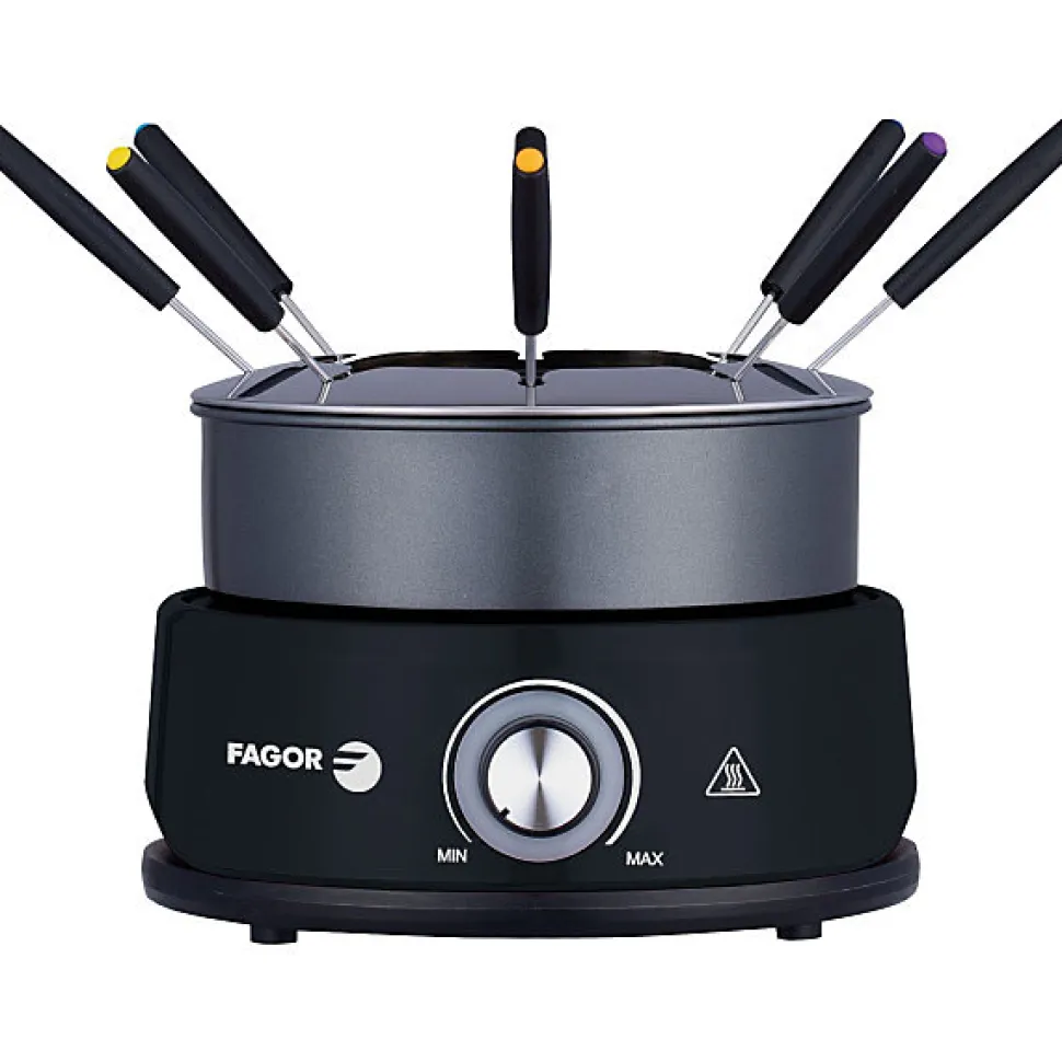 Plongez dans la tradition de la fondue avec l’Appareil a fondue FAGOR FGFD8 ! Parfait pour 8 personnes, cet appareil offre une capacité généreuse de 1.6L et une puissance de 800W. Son thermostat réglable vous permet de maintenir la température idéale pour une fondue réussie. Le revetement antiadhérent et les pieds antidérapants garantissent un usage sécurisé et un entretien facile.