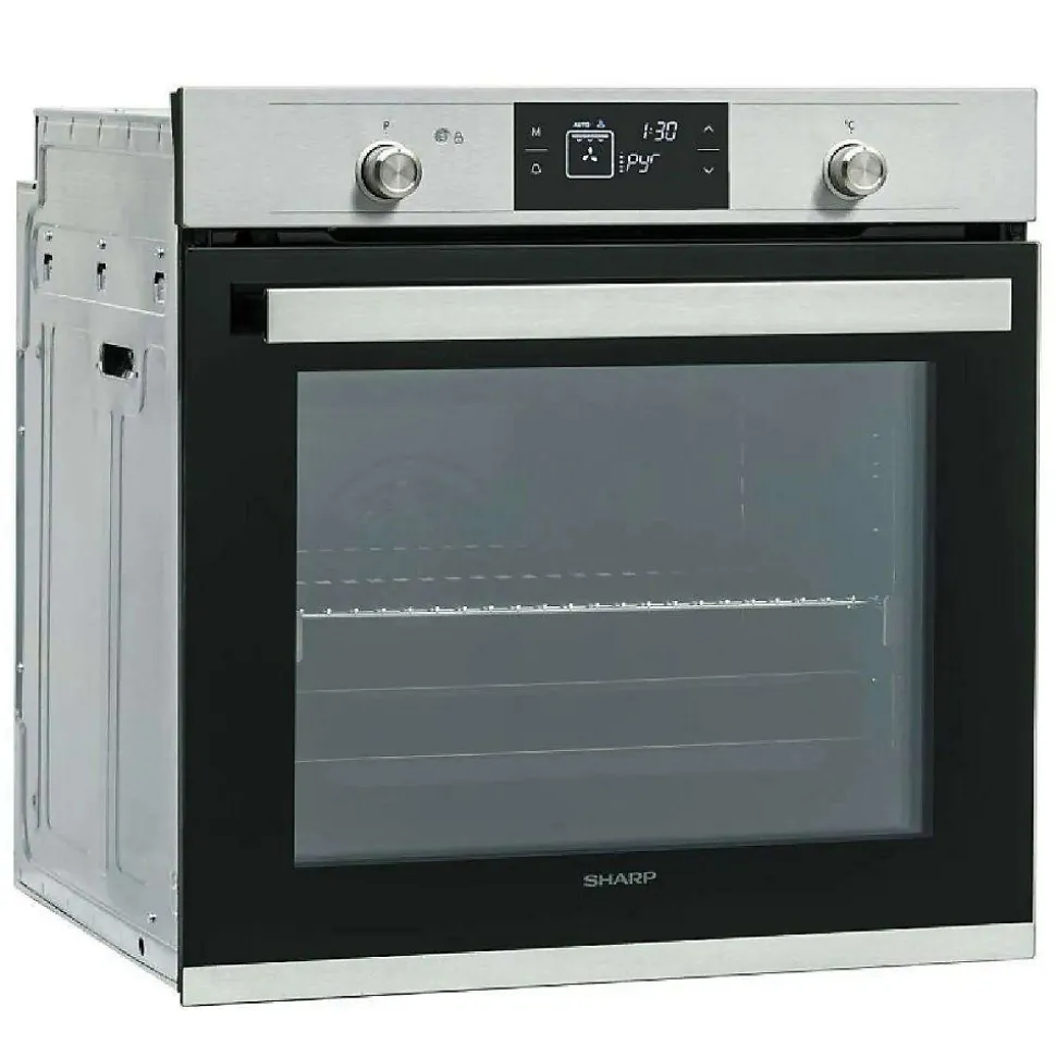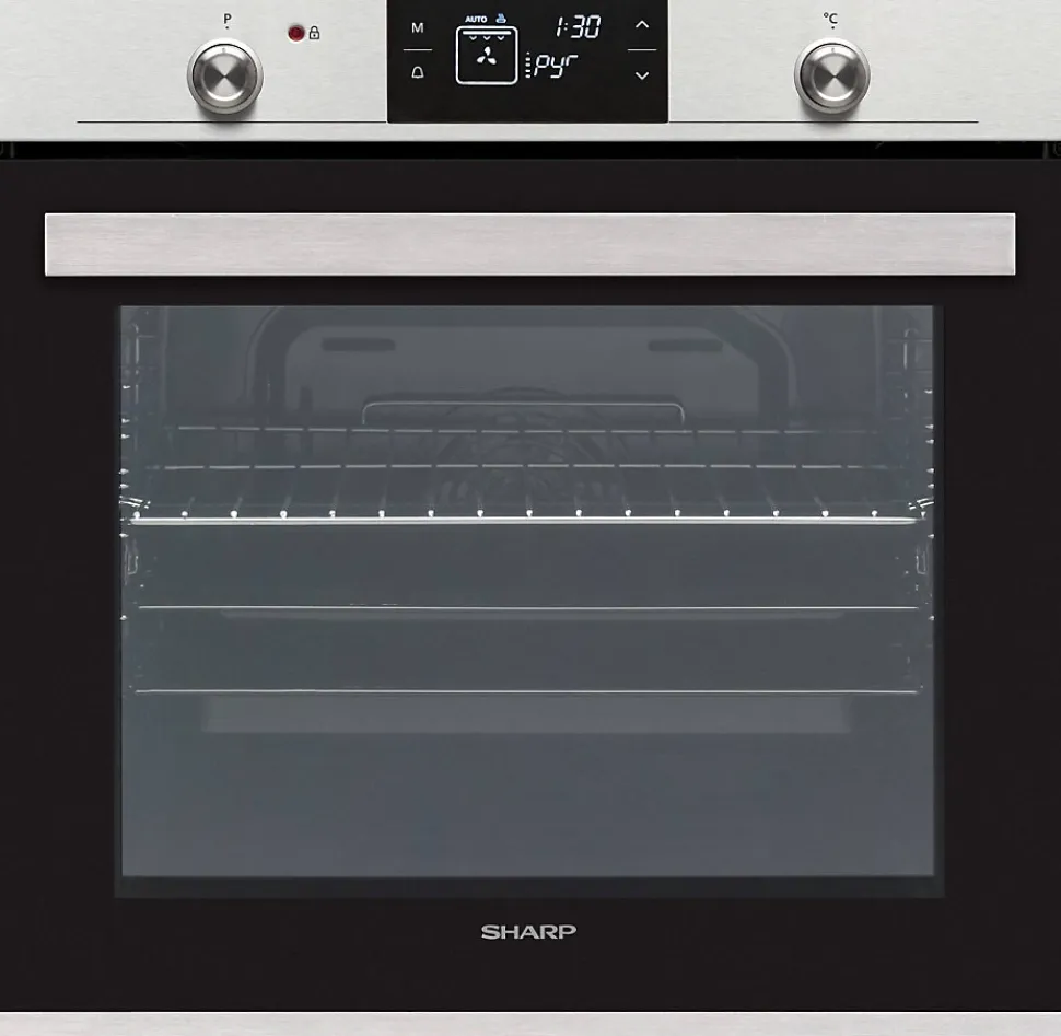 Four encastrable multifonction 78l 59cm a pyrolyse noir Sharp – Four encastrable multifonction Sharp K71V28IM2.Nettoyage Pyrolyse: le four fonctionne à très haute température (480°C) pendant 1,5h pour réduire en cendres les salissures.ActiveCool: Equipée d’un quadruple vitrage et d’un système de ventilation, la porte du four est isolée de façon efficace et reste froide, même à des températures de pyrolyse (480°C).Remove&Wash: la vitre intérieure de la porte du four est amovible pour être nettoyée.Cavité: fours grande capacité 78 L + plateaux larges.Four multifonction à chaleur tournante air pulsé (turbine + résistance circulaire sur la parois arrière) .Rails entièrement télescopiques: Sortie totale des plaques.Fermeture douce assistée « SoftClosingDoor »: La porte du four se referme toute seule quand elle est relâchée juste avant d?être fermée. – Classe énergétique : A.Nombre de cavités : 1.Type d’énergie : ElectriqueVolume total net (L) : 78.Mode de cuisson : Multifonction.Ecran : Oui.Horloge : Oui.Nettoyage : Pyrolyse.Programmateur : Oui.Couleur : Noir.Anti-traces : Oui.Nombre de modes de cuisson : 7.Convection naturelle : Oui.Gril : Oui.Tournebroche : Non.Cuisson vapeur : Non.Décongélation : Oui.Autre(s) mode(s) de cuisson : Chaleur brassée, Turbo.Type de porte : Fermeture douce.Ouverture de la porte : Porte abattante.Porte froide : Oui.Nombre de vitre(s) : 4.Eclairage intérieur : Oui.Sonde à viande : Non.Lèchefrite : Oui.Accessoire(s) inclus : Kit rails télescopiques, 1 lèchefrite, 1 plateau profond.Dimensions du produit (HxlxP) en cm : 59.2 x 59.2 x 56.5.Dimensions d’encastrement (HxlxP) en cm : 58 x 56 x 59.