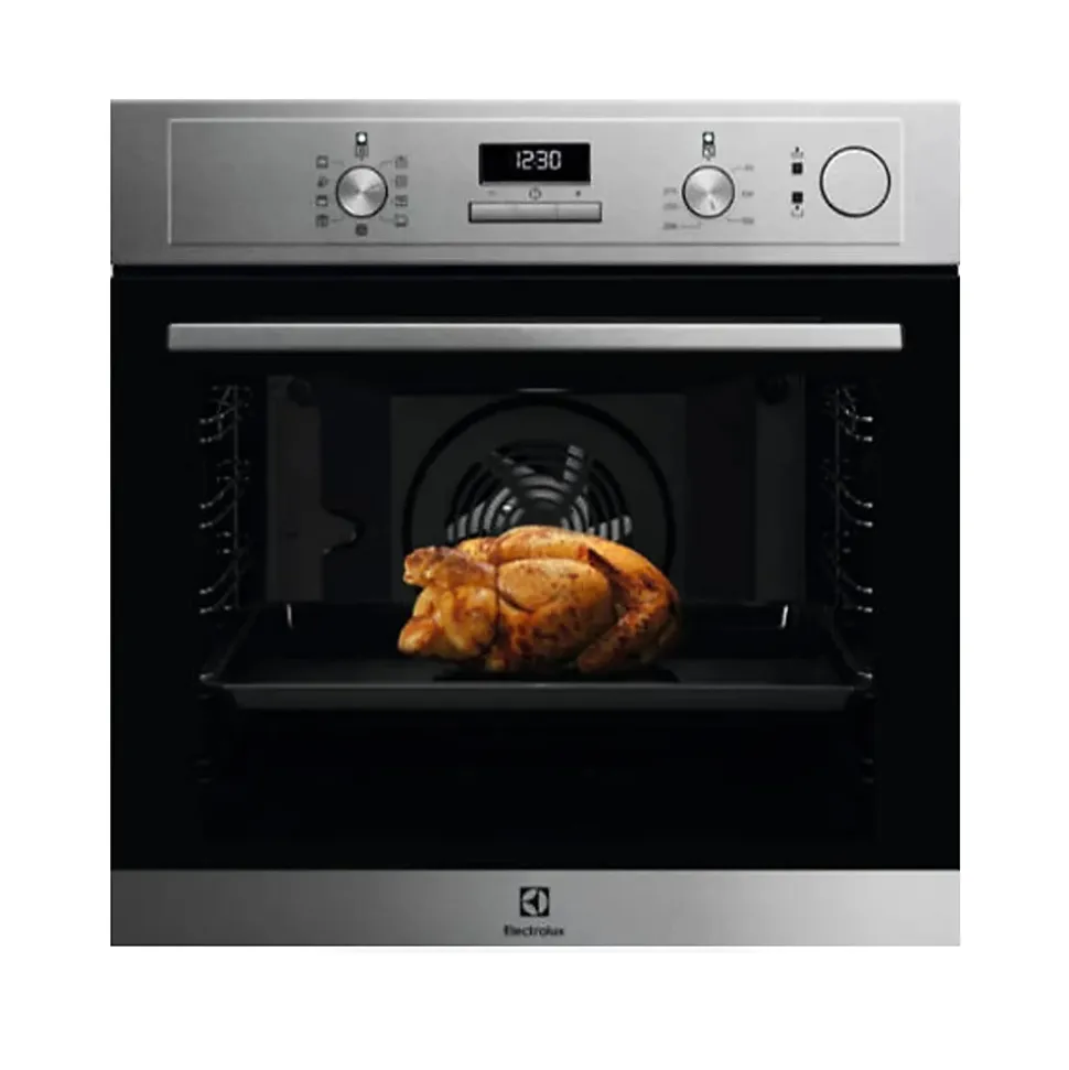Le four pyrolyse ELECTROLUX EOC4P46X combine cuisson traditionnelle, chaleur tournante et cuisson vapeur pour des résultats optimaux. Sa technologie pyrolyse assure un nettoyage efficace par montée en température élevée. Équipé d’un écran tactile et de manettes rétractables, il offre une expérience utilisateur fluide. Polyvalent, il propose 45 programmes automatiques, pizza, décongélation, et un préchauffage rapide. Son volume de 72L et sa porte froide facilitent l’usage au quotidien dans un design inox moderne.
