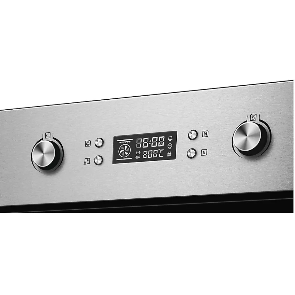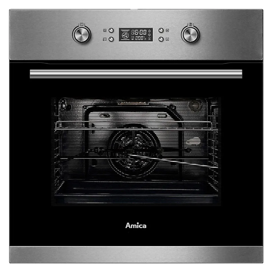 Four intégrable multifonction 70l 60cm pyrolyse inox Amica – Four intégrable multifonction Ligne Amica classique AO2008X/1 d’une capacité de 70 litres. – Type de produit : Four intégrable.Gamme : Ligne Amica classique.Mode de cuisson : Multifonction.Nettoyage : Pyrolyse.Indice d’efficacité énergétique (EEI cavité entière) : 89.3.Classe d’efficacité énergétique cavité entière : A.Conso. énergie cavité entière mode conventionnel (kWh/cycle) : 0.89.Conso. énergie cavité entière mode chaleur tournante (kWh/cycle) : 0.75.Nombre de cavités : 1.Source de chaleur par cavité : Electrique.Volume cavité entière (L) : 70.Programmateur : Oui.Type de programmateur : LED électronique.Connecté : Non.Puissance totale (W) : 3200.Finition / Nuance : Inox.Nbre de modes de cuisson : 7.Chaleur tournante brassée : Oui.Cuisson vapeur : Non.Ouverture de la porte : Porte abattante.Porte froide : Oui.Nbre de vitre(s) : 4.Type de bandeau de commande : Manettes Push/Pull + boutons.Eclairage intérieur : Oui.Sonde de cuisson : Non.Lèchefrite : Oui.Autres : Verres démontables, Gradins fils amovibles.Accessoire(s) inclus : Lèchefrite anti-adhérente, Grille.Ecran : Oui.Couleur : Inox.Dim. H x L x P (cm) : 59.5 x 59.5 x 57.5.Encastrement H x L x P (cm) : 60 x 56 x 57.Poids (kg) : 28.